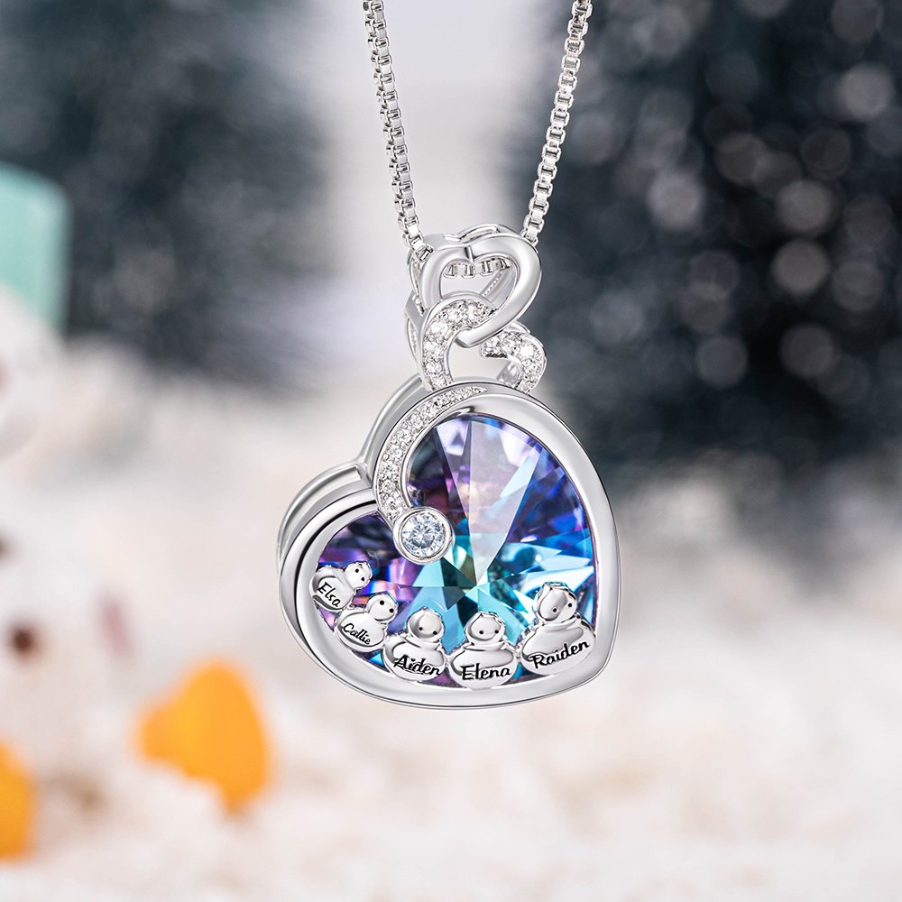 Mit 1 bis 5 individuell gestaltbaren Schneemännern symbolisiert diese herzförmige Halskette Liebe und Verbundenheit. Sie ist ein wunderschönes Symbol für die Familie oder enge Freunde. Sie können Namen eingravieren und die Farben der Kristalle auswählen, was sie zu einem einzigartigen und herzlichen Geschenk für jeden Anlass machen.