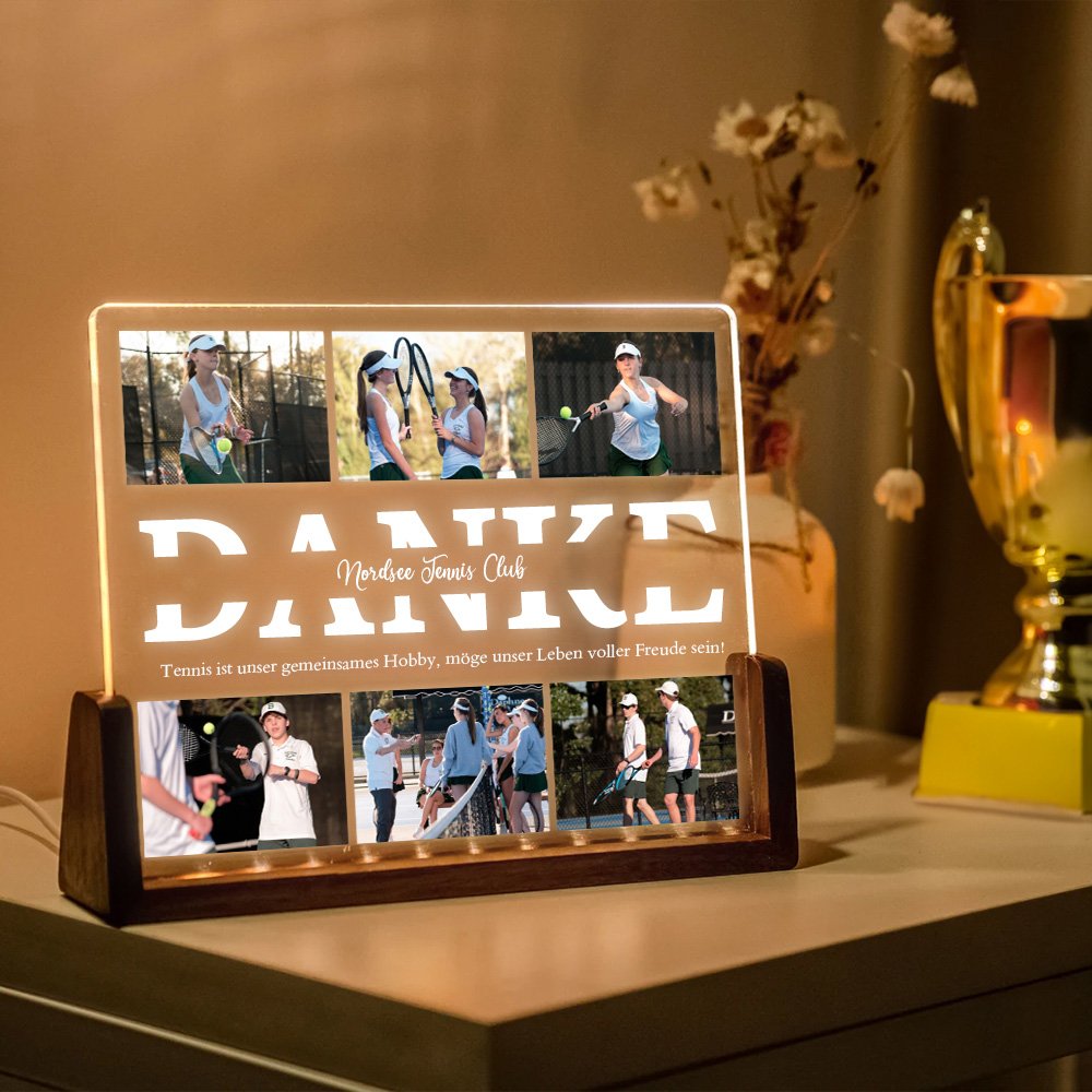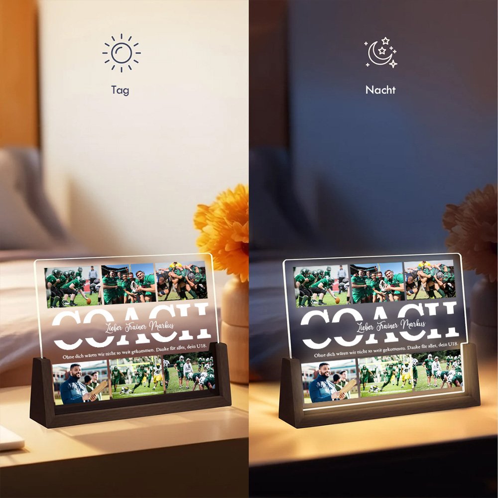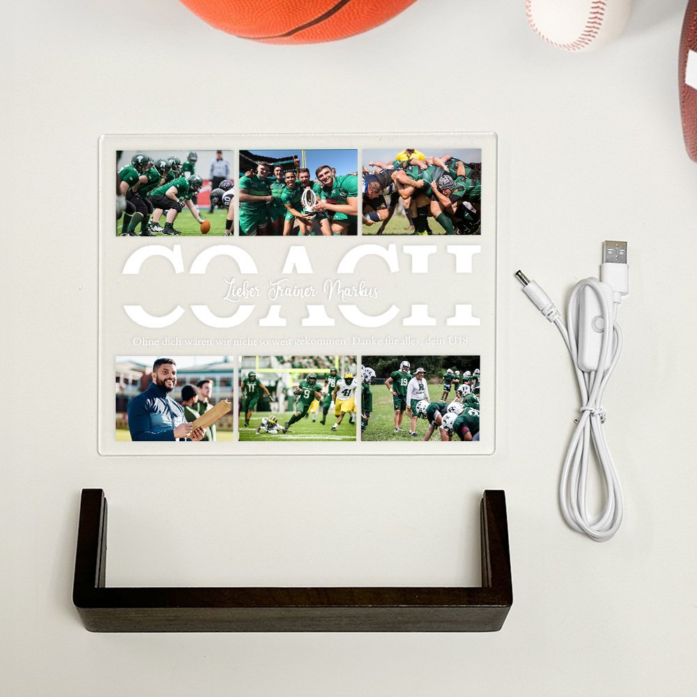 Mit diesem besonderen Nachtlicht können Sie bis zu 6 Lieblingsfotos präsentieren. Es eignet sich perfekt für Sportthemen wie Fußball, Pickleball, Baseball, Tennis, Softball, Volleyball und Rugby und verleiht Ihren Lieblingserinnerungen eine persönliche Note. Sie können es auch mit Namen, Titeln, Nachricht usw. personalisieren. Ganz gleich, ob Sie einen Trainer ehren oder einer denkwürdigen Saison gedenken, dieses Nachtlicht ist eine herzliche Art, Ihre Leidenschaft und Wertschätzung auf einzigartige und sinnvolle Weise zum Ausdruck zu bringen!