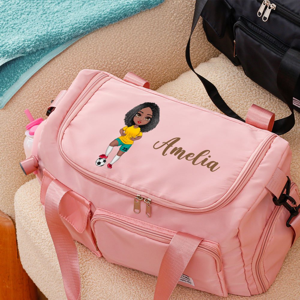 Diese Tasche ist mit einem dynamischen Fußball-Mädchen im Sinn, spielerisch und stilvoll gestaltet. Sie können Ihren Namen auf die Tasche schreiben, dieses einzigartige Designelement fügt nicht nur einen Hauch von Charme hinzu, sondern spiegelt auch die positive Energie der Frauen wider, was sie zu einem angenehmen Accessoire für jede Gelegenheit macht.