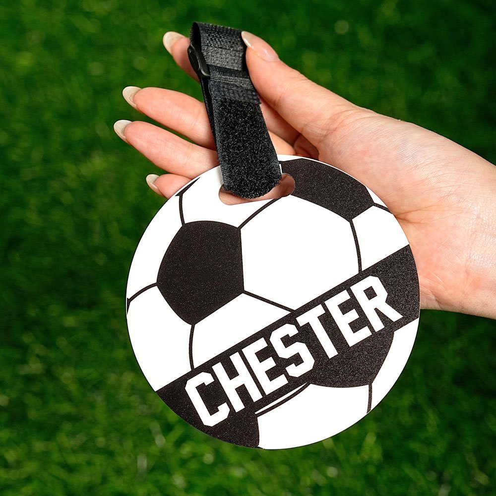 Das klassische Design mit Fußballmotiv verleiht diesem Taschenanhänger eine lebendige Energie. Sie können Ihren Namen auf der Oberfläche anbringen, was ein Gefühl der persönlichen Identität und des Stolzes fördert. Es hilft auch, die Tasche in Gruppen zu identifizieren, z. B. bei Fußballkursen oder Wettbewerben.