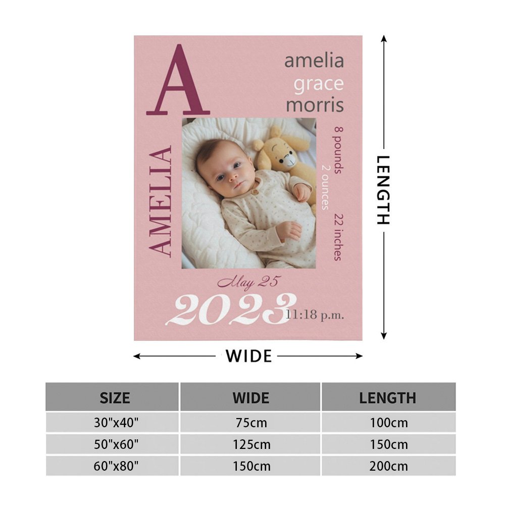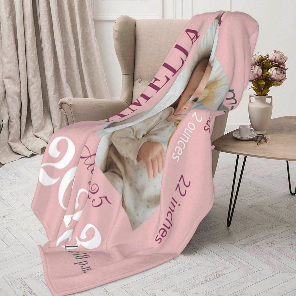 Diese personalisierte weiche Flanell- oder Sherpa-Decke ist das perfekte Geschenk für die Ankunft eines kostbaren Neugeborenen. Durch das Hinzufügen des Fotos und der Geburtsdaten wird sie zu einem unschätzbaren Andenken, das die ersten Tage des Kindes festhält.