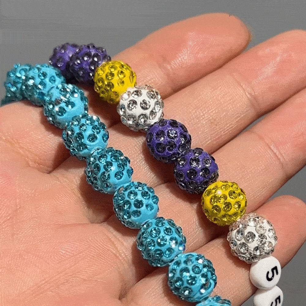 | Material: | Disco Ball Perle - Soft Clay, Strassstein Buchstabenperle - Acryl |