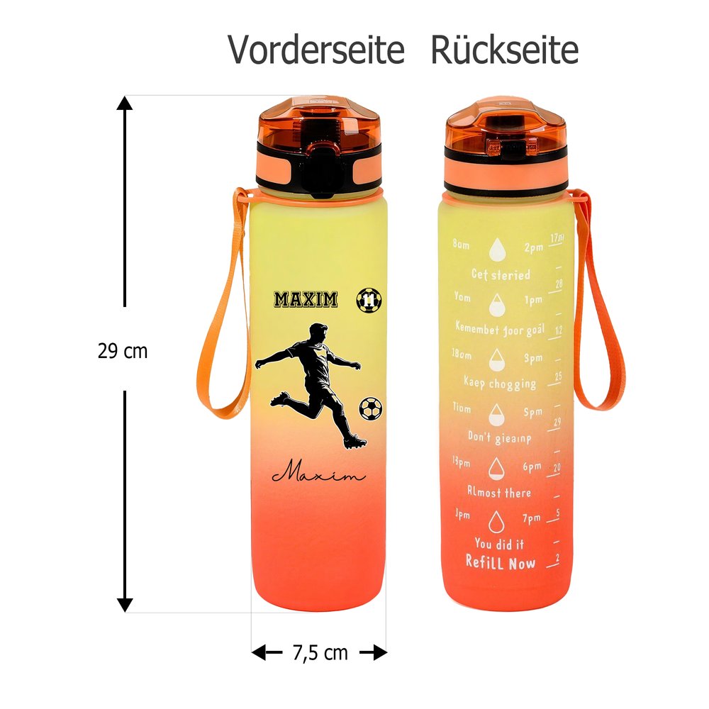 Diese Sport-Wasserflasche besticht durch einen leuchtenden Farbverlauf und eine glatte, durchscheinende Oberfläche. Sie können aus verschiedenen Silhouetten von Ballsportlern – darunter Basketball, Fußball, Volleyball, Tennis und Handball – wählen und zusätzlich Ihren persönlichen Namen hinzufügen. Durch die individuelle Gestaltung wird sichergestellt, dass keine Duplikate entstehen, sodass sportliche Energie auf elegante Weise mit Ihrem ganz persönlichen Stil kombiniert wird.