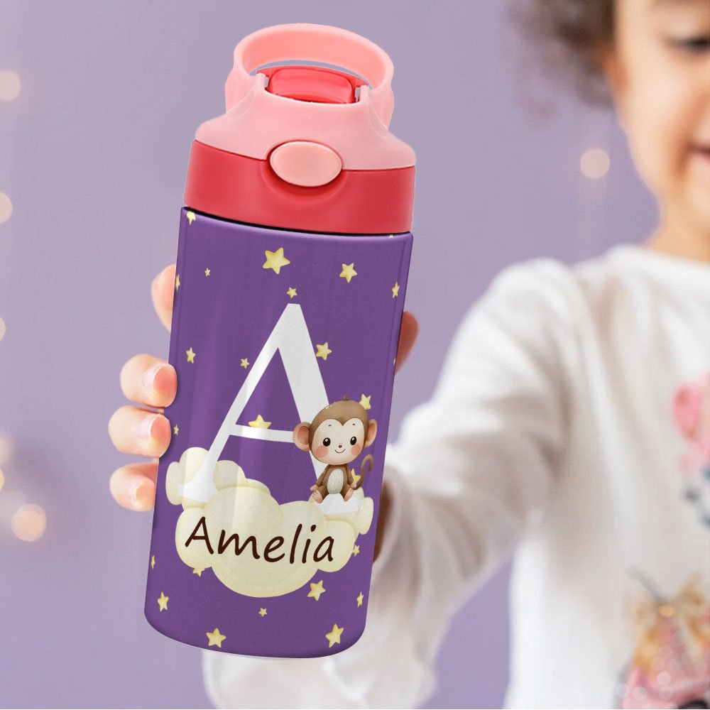 Das Design ist von fantasievollen Nebeln und Waldtieren inspiriert und strahlt voller Kindlichkeit und Fantasie. Jede Trinkflasche kann mit dem Namen und den Initialen des Kindes personalisiert werden, wodurch sie einzigartig und exklusiv für Ihr kleines Kind wird. Der traumhafte Nebelhintergrund ergänzt die lebendigen und niedlichen Waldtier-Illustrationen, die nicht nur die Neugier der Kinder wecken, sondern auch zu einem modischen Zubehör im Alltag werden können.