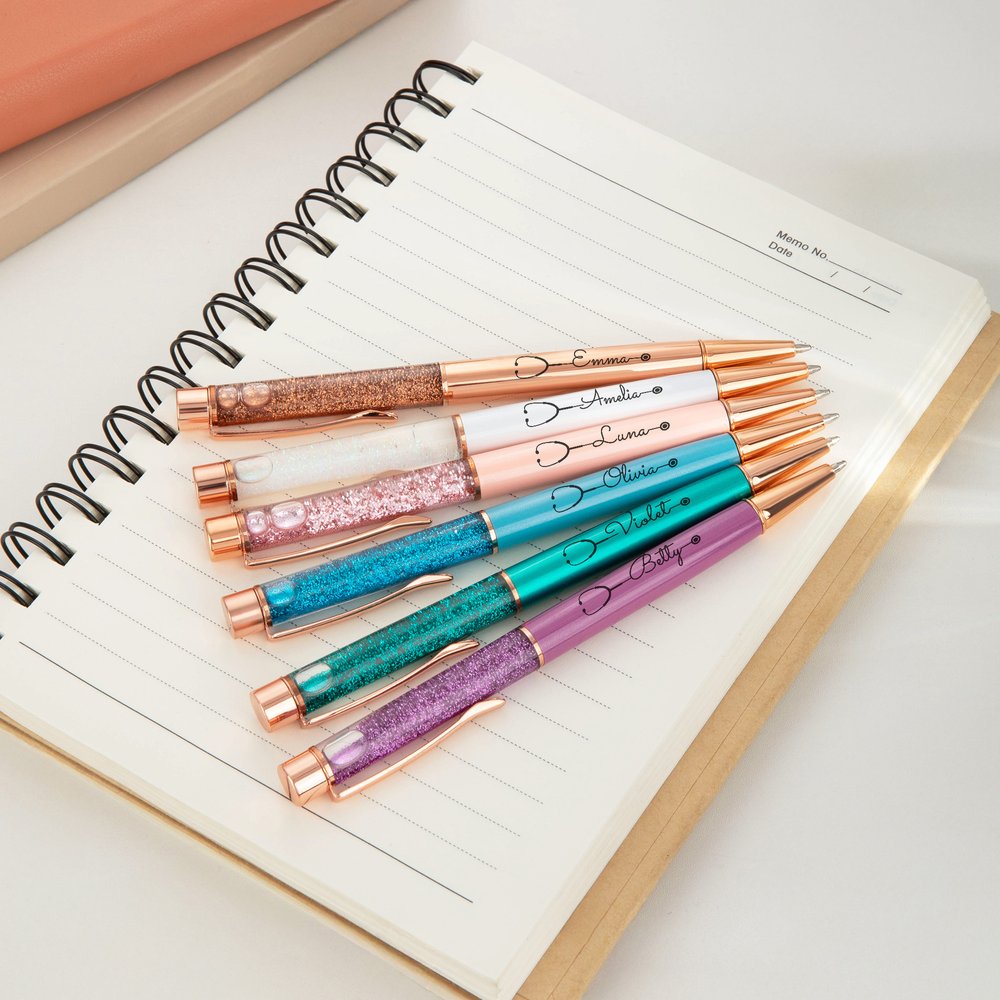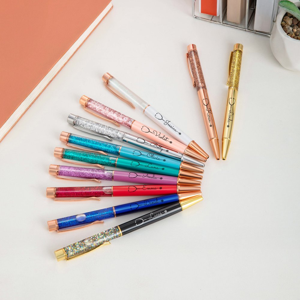 Dieser Stift ist auf einem fein gedruckten Stethoskop-Muster zentriert. Der Stiftkörper ist mit glitzerndem, dynamischem Flüssigsand gestaltet, der nicht nur wunderschön aussieht, sondern auch ein Gefühl von fließender Schönheit vermittelt. Sie können auch Ihren Namen anpassen, um ein einzigartiges Kunstwerk zu schaffen.