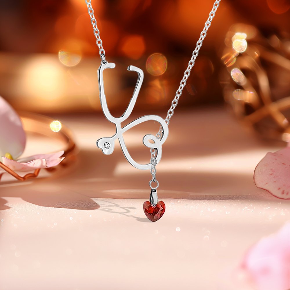 Die Stethoskop-Halskette ist raffiniert gestaltet und kombiniert das Stethoskop mit einem herzförmigen Geburtsstein. Es zeigt das professionelle Bild des medizinischen Personals und ermöglicht jedem Träger, ihre einzigartige Persönlichkeit zu zeigen. (HOCHWERTIGE HANDWERKSKUNST): Diese sorgfältig gefertigte Halskette besteht aus hochwertigem Edelstahl oder Sterlingsilber und ist daher sehr langlebig. Die Kette ist robust und bequem und eignet sich daher perfekt für den Alltag oder besondere Anlässe. (VIELSEITIGES ACCESSOIRE): Diese personalisierte Stethoskop-Halskette geht nahtlos vom Arbeitsplatz in den Alltag über und wertet jedes Outfit mit Stil und Professionalität auf.
