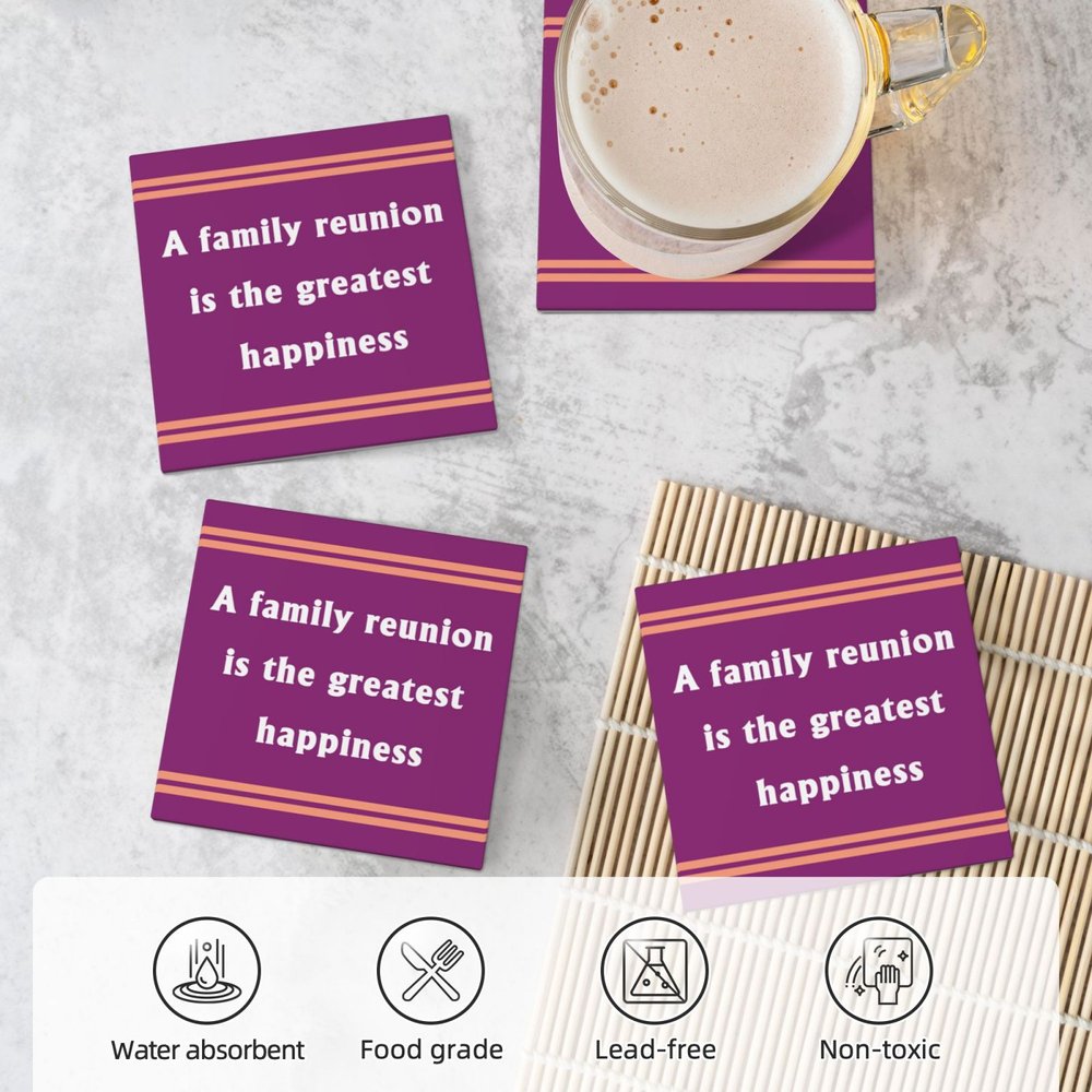 This coaster features a simple striped border design with a text-only quote in the middle. You can customize classic celebrity quotes or warm words you want to give to your family to create a unique coaster that enhances your home decor in a personalized and meaningful way.