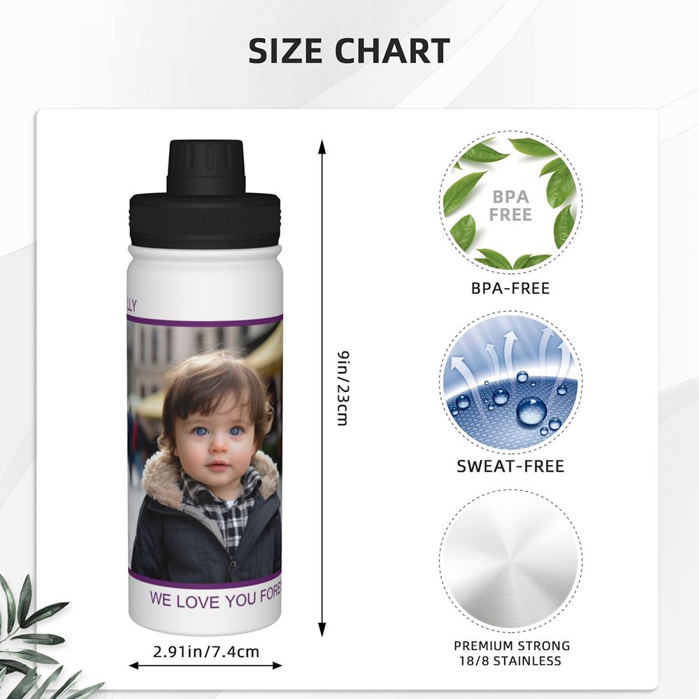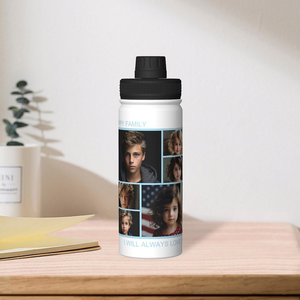 Sie können ein bis sechs Bilder hinzufügen, um diese Sportisolierflasche zu personalisieren. Ob Sie die Flasche für den persönlichen Gebrauch oder als Geschenk für Verwandte oder Freunde verwenden, ist dies eine ganz besondere Wahl, die sofort die Persönlichkeit des Benutzers zu anderen vermitteln kann.