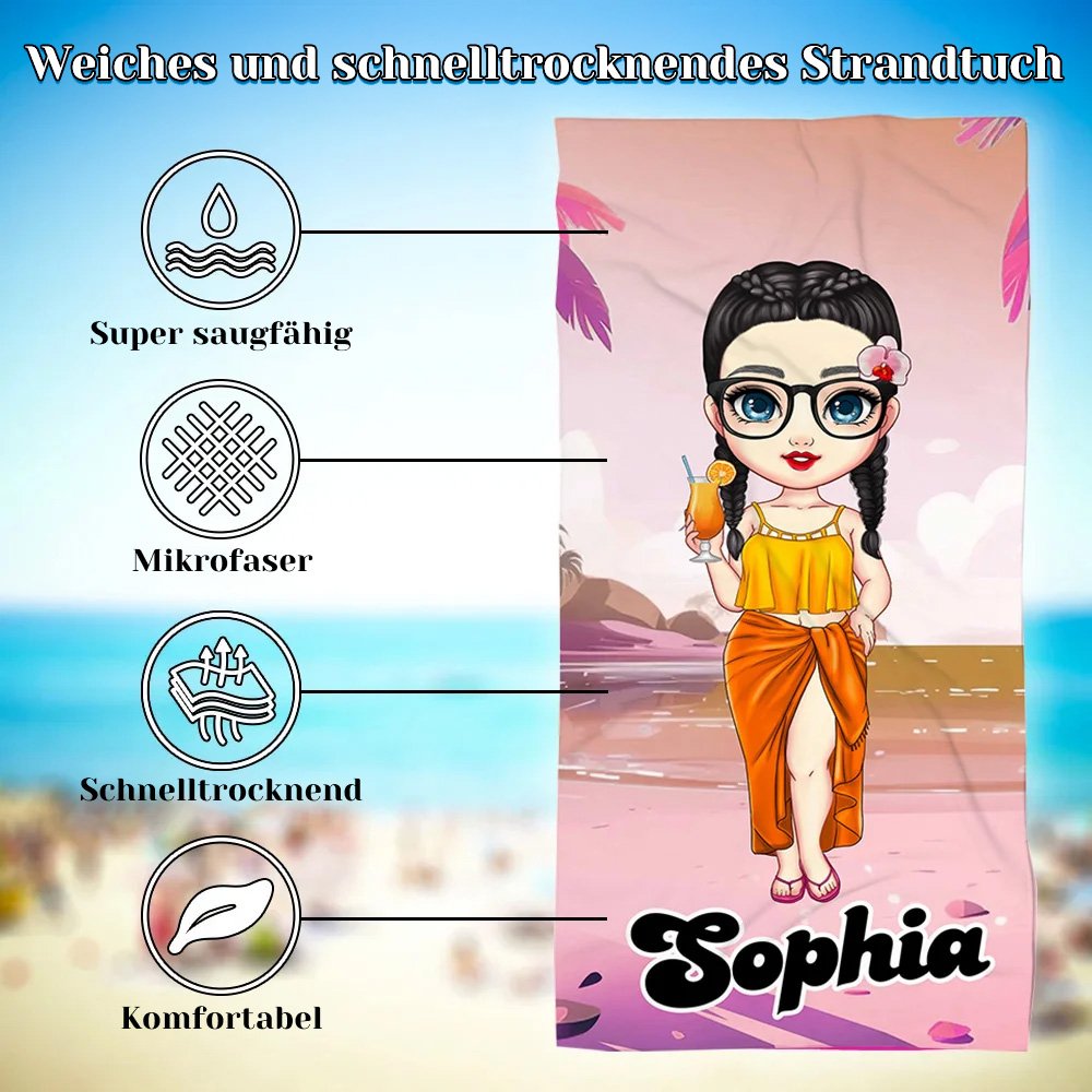 Ein farbenfrohes, auffälliges Design macht dieses Strandtuch zu einem echten Hingucker. Wählen Sie aus verschiedenen Strandhintergründen und niedlichen Cartoon-Motiven die Variante, die am besten zu Ihrem persönlichen Stil passt. Zusätzlich haben Sie die Möglichkeit, Ihren Namen oder einen besonderen Text aufdrucken zu lassen – so entsteht ein ganz individuelles und einzigartiges Lieblingsstück.