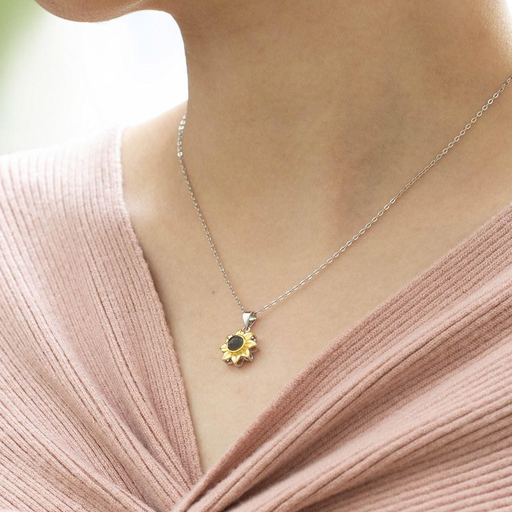 Sie können die Sonnenblumen-Halskette bei jeder Gelegenheit tragen, wie z.B. Abschlussball, Geburtstagsparty, Dinnerparty, Verabredung, tägliches Leben, etc. Es kann Ihnen viel Glück bringen und machen Sie mehr attraktiv für die Augen der Menschen! (PERSONALISIERUNG): Sie können ein Foto mit einer besonderen Bedeutung hochladen. Bitte beachten Sie, dass die Fotos klar und qualitativ hochwertig sein müssen, damit eine perfekte Projektionskette hergestellt werden kann.