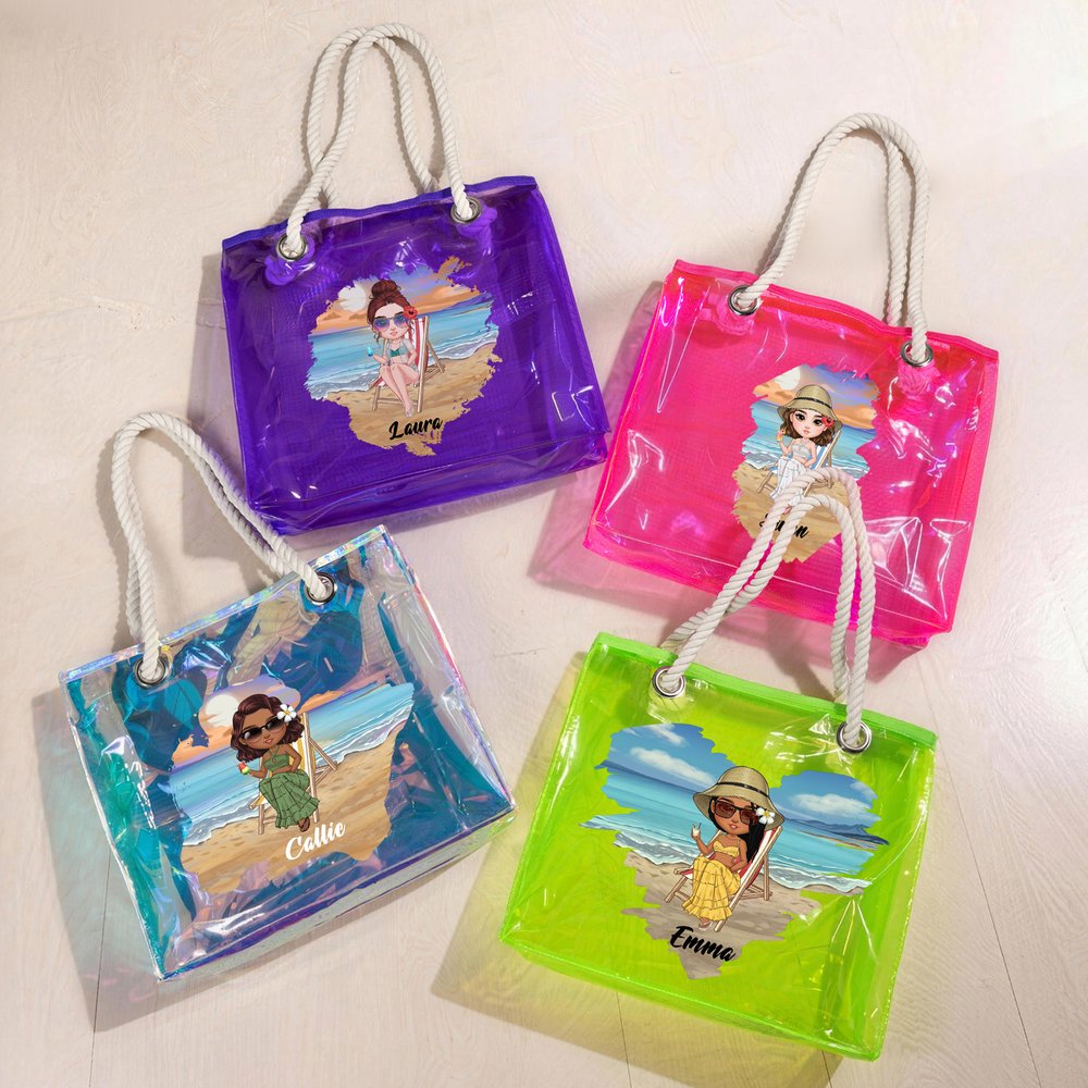 Diese Tragetasche zeichnet sich durch ihr hohes Fassungsvermögen aus und eignet sich ideal für die Aufbewahrung von Sonnenschutzmitteln, Badeanzügen, Handtüchern oder Kosmetikartikeln. Das holografische, transparente Design ermöglicht es, den Inhalt auf einen Blick zu erfassen, sodass Sie Ihre Gegenstände jederzeit bequem mitnehmen können. Der schlichte und vielseitige Stil ist ideal für verschiedene Anlässe, wie den Weg zum Unterricht, zu Meetings oder den Wochenendurlaub.