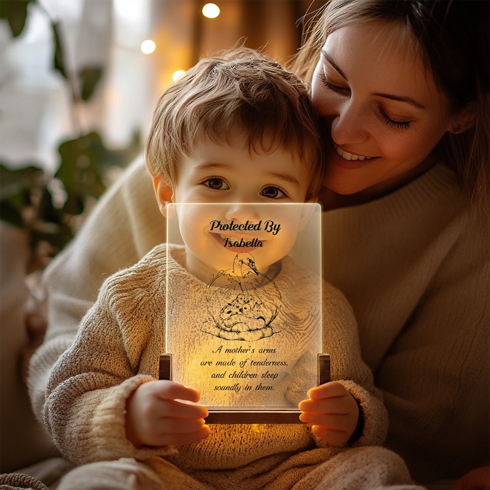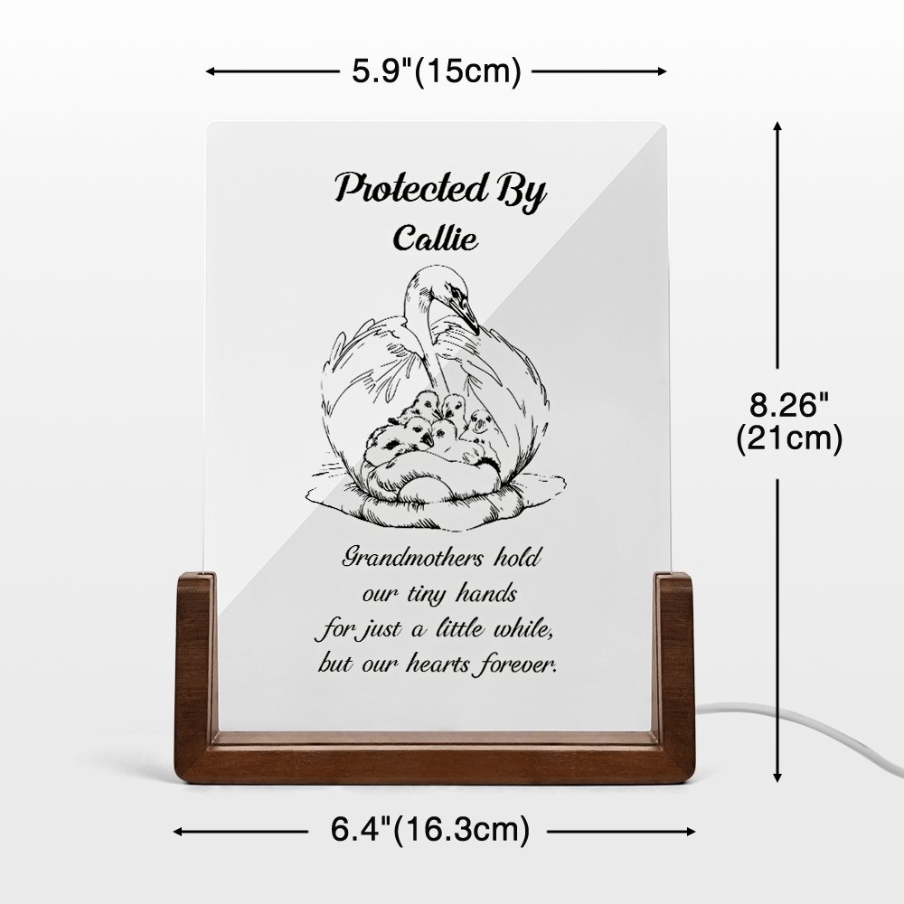 Dieses Nachtlicht zeigt eine Schwanenmutter, die ihre kleinen Gänse mit ihren Flügeln beschützt, und ist mit verschiedenen herzerwärmenden Worten versehen. Mütter und Großmütter beschützen ihre kleinen Kinder wie Schwäne. Sie können auch den Namen hinzufügen, um es zu einem einzigartigen Kunstwerk zu machen, das Ihre Persönlichkeit zeigt und Segenswünsche vermittelt.