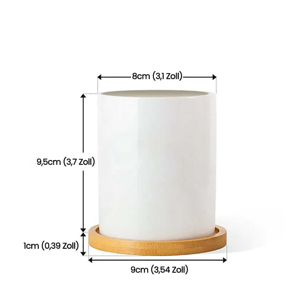 | Größe: | Blumentopf - 8cm × 9,5cm (3,1 Zoll × 3,7 Zoll), Buchensockel - 9cm × 1cm (3,54 Zoll × 0,39 Zoll) |