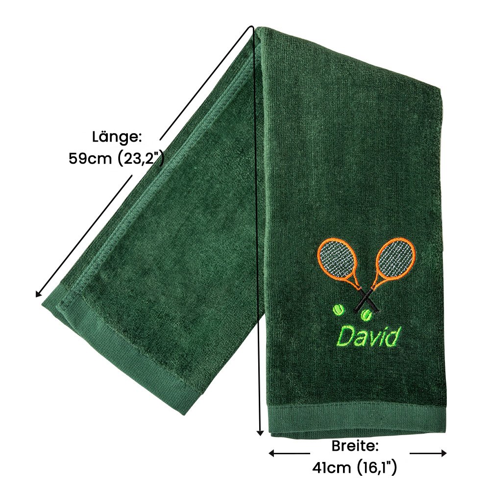 Dieses Handtuch ist mit einem aufwändig gestickten Tennisschläger versehen, der dem Gesamtbild ein sportliches und stilvolles Element verleiht. Der Clou an diesem Handtuch ist die Möglichkeit, es mit einem Namen zu personalisieren. Ganz gleich, ob Sie Ihren eigenen Namen oder den Ihres Lieblingsspielers hinzufügen möchten, erfahrene Stickerinnen sorgen dafür, dass jedes Detail perfekt auf das Handtuch gestickt wird. Unser Handtuch ist ein unverzichtbares Accessoire für jeden Tennisspieler, Trainer oder Liebhaber des Spiels.