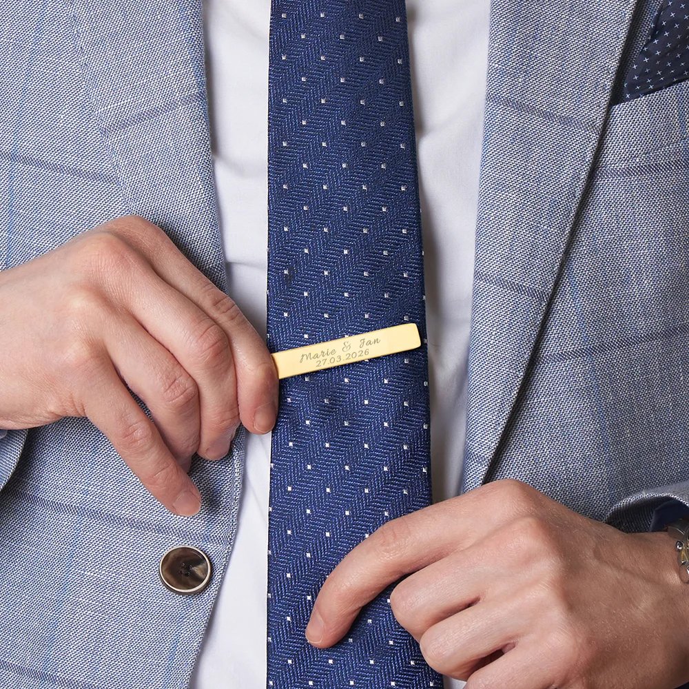 Suchen Sie ein persönliches Geschenk, das auch langfristig eine Bedeutung hat? Diese personalisierbare Krawattenklammer ist die ideale Wahl für besondere Momente im Leben. Ob als Dankeschön für die Trauzeugen, als liebevolles Geschenk zum Vatertag oder als exklusives Geburtstagspräsent für Ihren Partner – mit der individuellen Gestaltung schenken Sie mehr als nur ein Accessoire. Sie überreichen eine Erinnerung, die jeden Tag aufs Neue mit Stolz getragen werden kann.