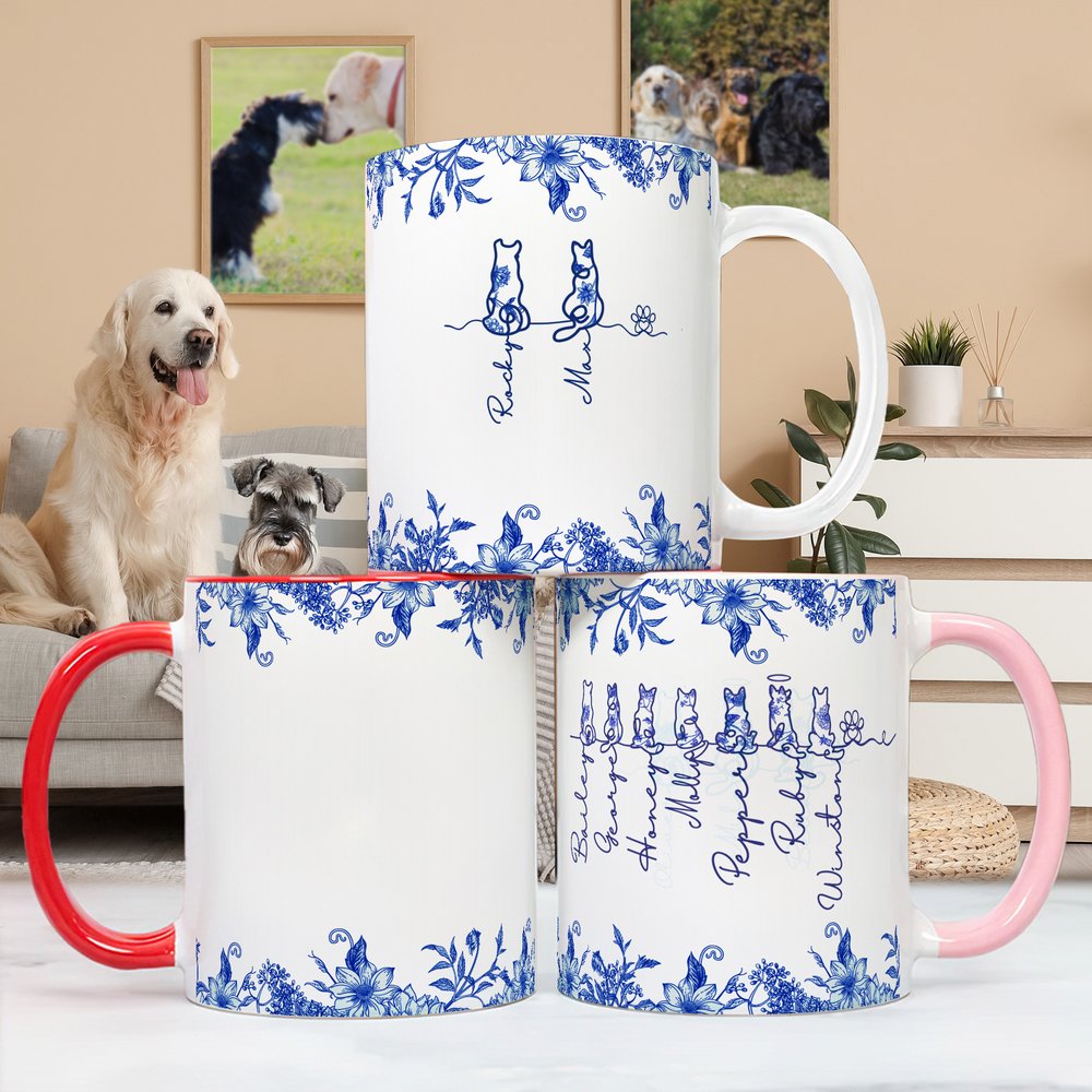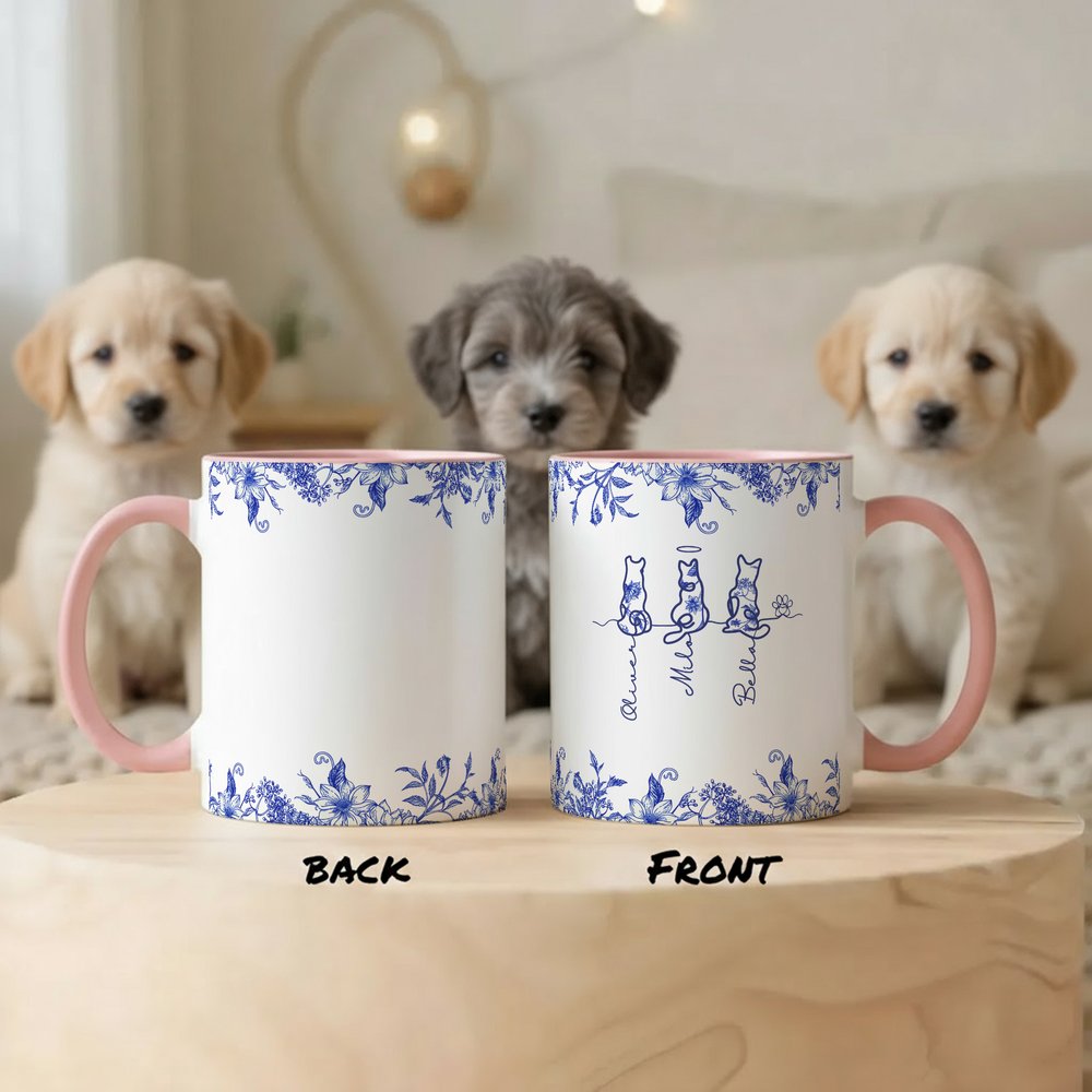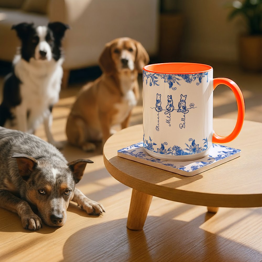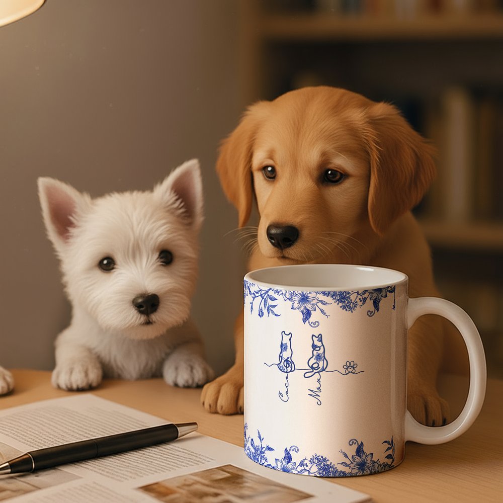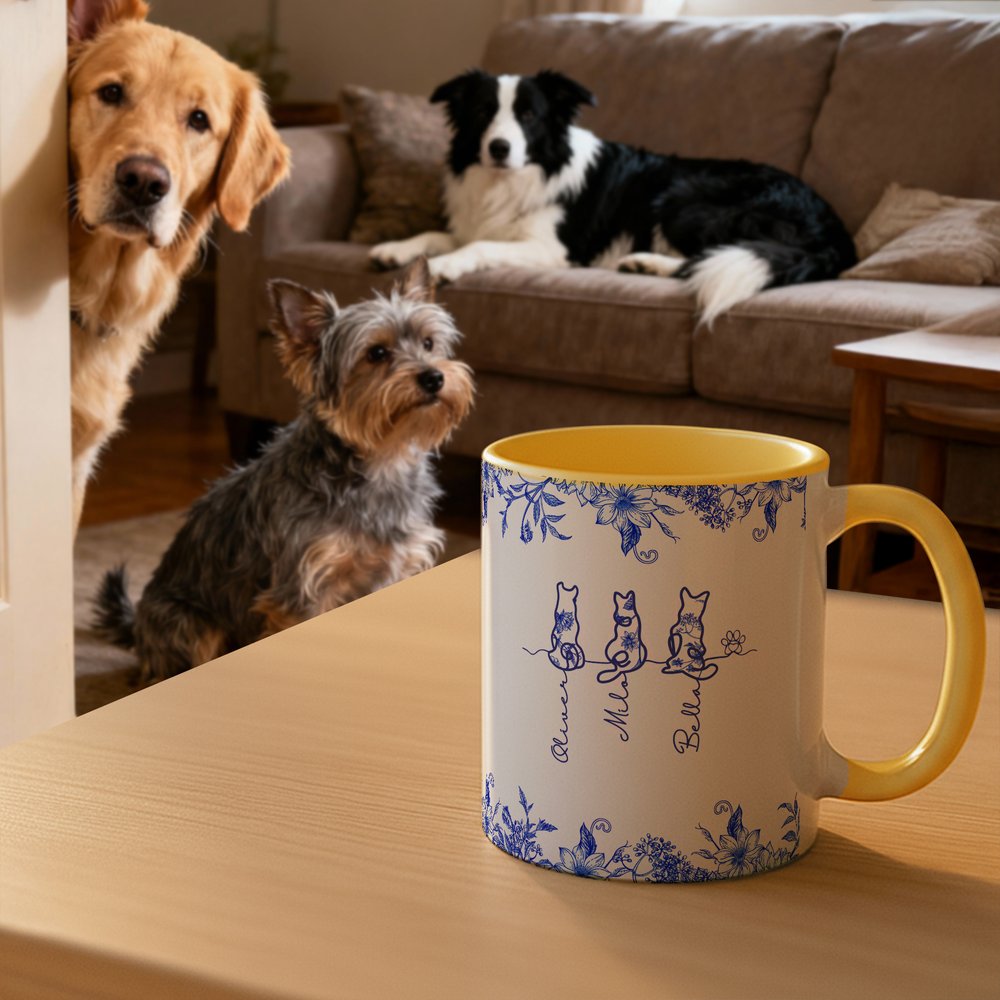 Im klassischen Toile De Jouy-Stil kreieren zarte Linien ein exquisites Blumen- und Laubmuster, das eine elegante Retro-Atmosphäre schafft. Der Becher kann mit den Silhouetten und Namen von bis zu sieben Hunden personalisiert werden, um den unterschiedlichen Bedürfnissen der verschiedenen Hundebesitzer gerecht zu werden. Egal, ob Sie in einem Haushalt mit einem oder mehreren Hunden leben, Sie können ein einzigartiges Design finden, das genau zu Ihnen passt.