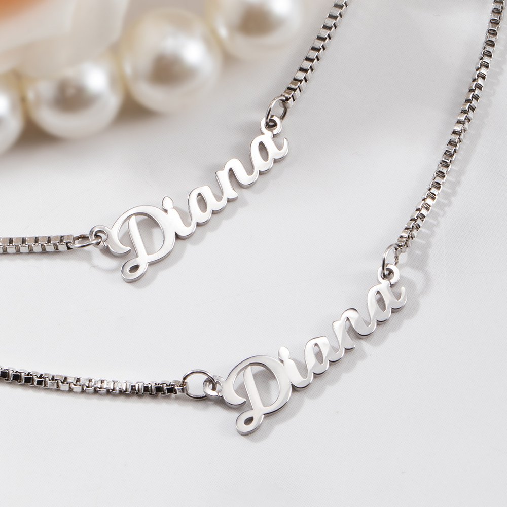 Diese doppellagige Halskette ist aus hochwertigem Edelstahl gefertigt und kann mit verschiedenen Namen versehen werden. So werden die Namen der wichtigsten Menschen zusammengefügt, um zu symbolisieren, dass wir nie getrennt sein werden. Ein zeitloses und atemberaubendes Design, das die perfekte Ergänzung für jede Schmucksammlung ist und den meisten Frauen steht.