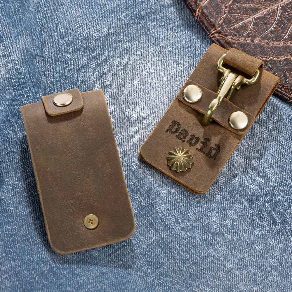 Dieser personalisierte Vintage-Leder-Schlüsselanhänger ist mehr als nur ein funktionelles Accessoire; er ist ein Statement. Der Schlüsselanhänger kann mit Ihrem Namen graviert werden und verwandelt so einen praktischen Gegenstand in einen wertvollen Begleiter, der Ihren persönlichen Stil widerspiegelt.