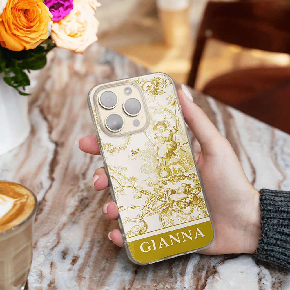 Diese Handytasche ist vom "Toile De Jouy" inspiriert, einem klassischen französischen Landhausstil, romantisch und elegant. Sie spiegelt ein natürliches und weiches Gefühl in der Farbabstimmung wider und symbolisiert einen entspannten und komfortablen Lebensstil. Sie können Ihren Namen anpassen, um Ihren Stil zu kreieren.