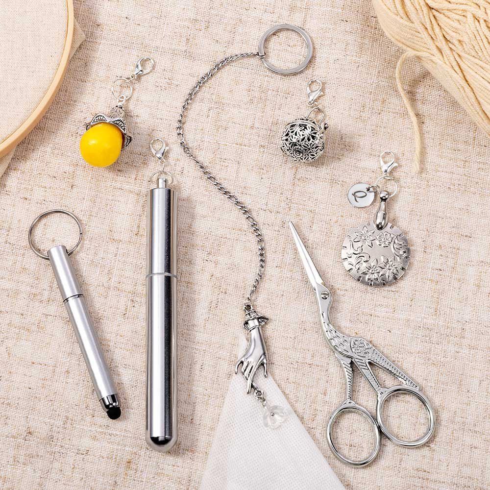 Größe: | Blatt Bund - 2.16" × 5.56"(5.5cm × 6.5cm), Kette Haken - längste 5.51"(14cm), Faden Waxer - 1.18" × 0.59"(3cm × 1.5cm), Taschentuchklammer-Kettenlänge - 6.3"(16cm), Aromatherapie-Stichmarkierungskugel - 0.98"(2.5cm)Durchmesser Storchenschere - 4.33" × 1.97"(11cm × 5cm), Fadenschneider - 1.18"(3cm)Durchmesser, Stift/Stylus - 3.15"(8cm) Nadelhülse - 4.72"(12cm) |