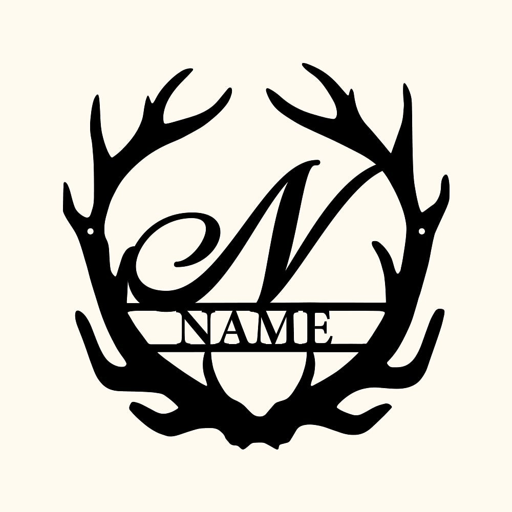 Personalisierte Wandkunst Geweih Monogramm Brief Metallschild mit Namen Jäger Geschenk Weihnachtsgeschenk für ihn Vatertag Geschenk