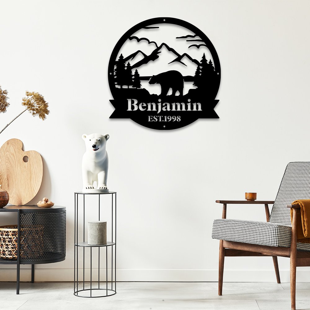 Personalisierte Wand Kunst Bär Monogramm Bär Metallschild mit Namen Jagd Geschenk für Mann Farther Großvater