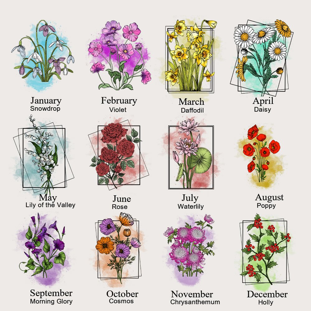Das exquisite Design der Geburtsblumen ist der beste Grund, warum sich unsere Canvas-Taschen abheben, und der einzigartige Aquarellstil verleiht den Geburtstagsblumen Charme. Sie können Ihre Namen anpassen und sie werden auf die Tasche gedruckt werden, um eine einzigartige Tasche zu schaffen.