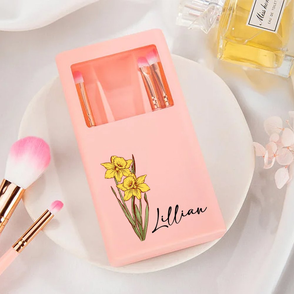 Dieses Make-up-Pinsel-Etui ist mit einer wunderschönen Aquarellblume versehen und kann mit dem Namen des Empfängers personalisiert werden. Diese Personalisierung verleiht ihm eine persönliche Note und macht es zu einem sinnvollen Geschenk.