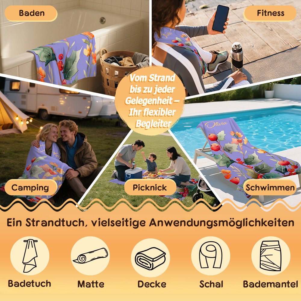 Dieses Produkt wurde speziell für Mädchen entwickelt, die den Sommer und das Meer besonders schätzen. Es eignet sich hervorragend als Geschenk zu Geburtstagen, Abschlussfeiern oder Sommerfesten. Durch die individuelle Bedruckung mit Namen und Geburtsblumen erhält es eine persönliche Note – ein nützlicher Begleiter und zugleich ein bedeutungsvoller Glücksbringer.