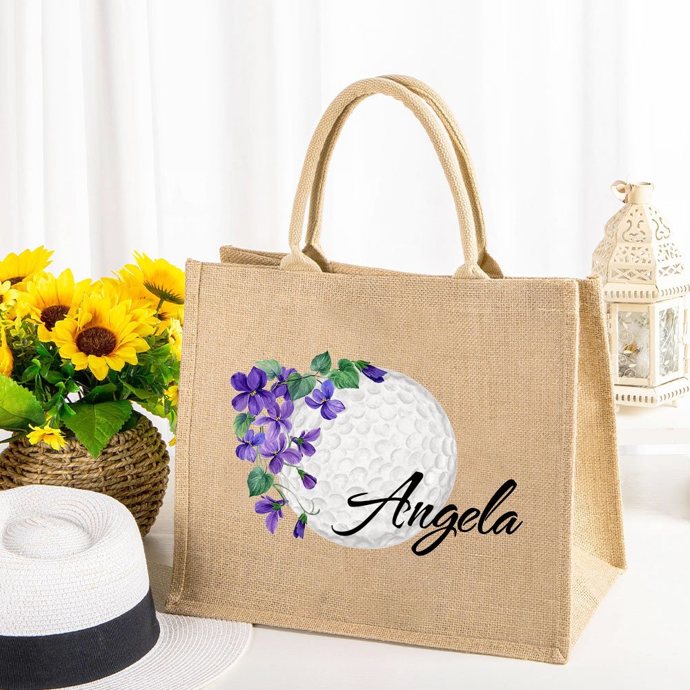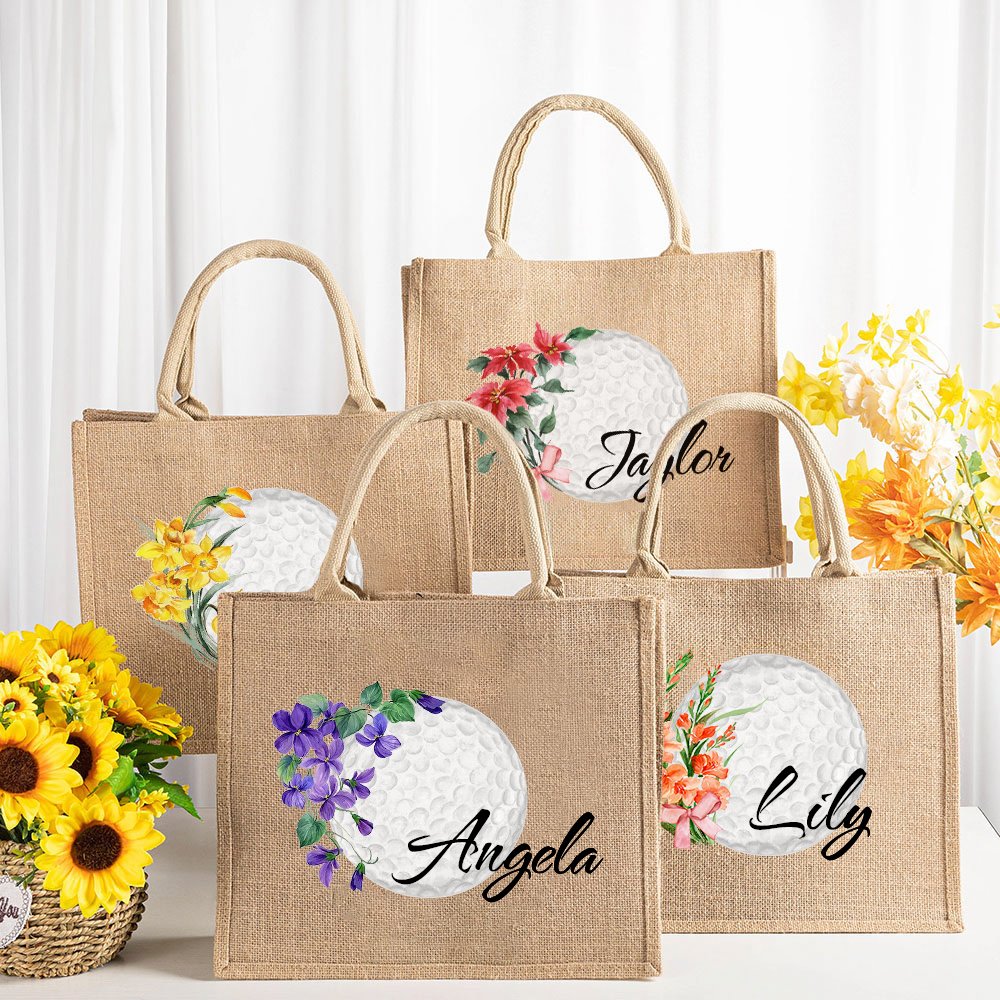 Diese geräumige Tragetasche ist mit einem Golfballmuster bedruckt. Sie können die lebendige Aquarell-Geburtstagsblume nach Ihrem Geburtsmonat auswählen, was einen Hauch von persönlichem Charme hinzufügt, der dieses Geschenk wirklich einmalig macht.