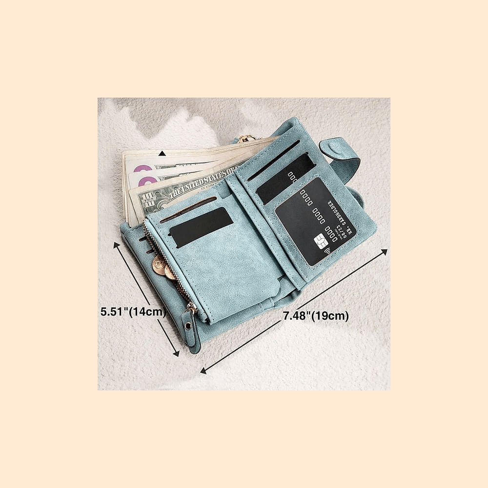 Dieses Portemonnaie aus hochwertigem PU-Leder ist weich, strapazierfähig und bequem. Sie verfügt über mehrere Kartenfächer, ein kleines Reißverschlussfach für Münzen, eine Handschlaufe, ein durchgehendes Geldscheinfach und ein geräumiges Reißverschlussfach, damit Sie immer gut organisiert sind, egal wo Sie sind.