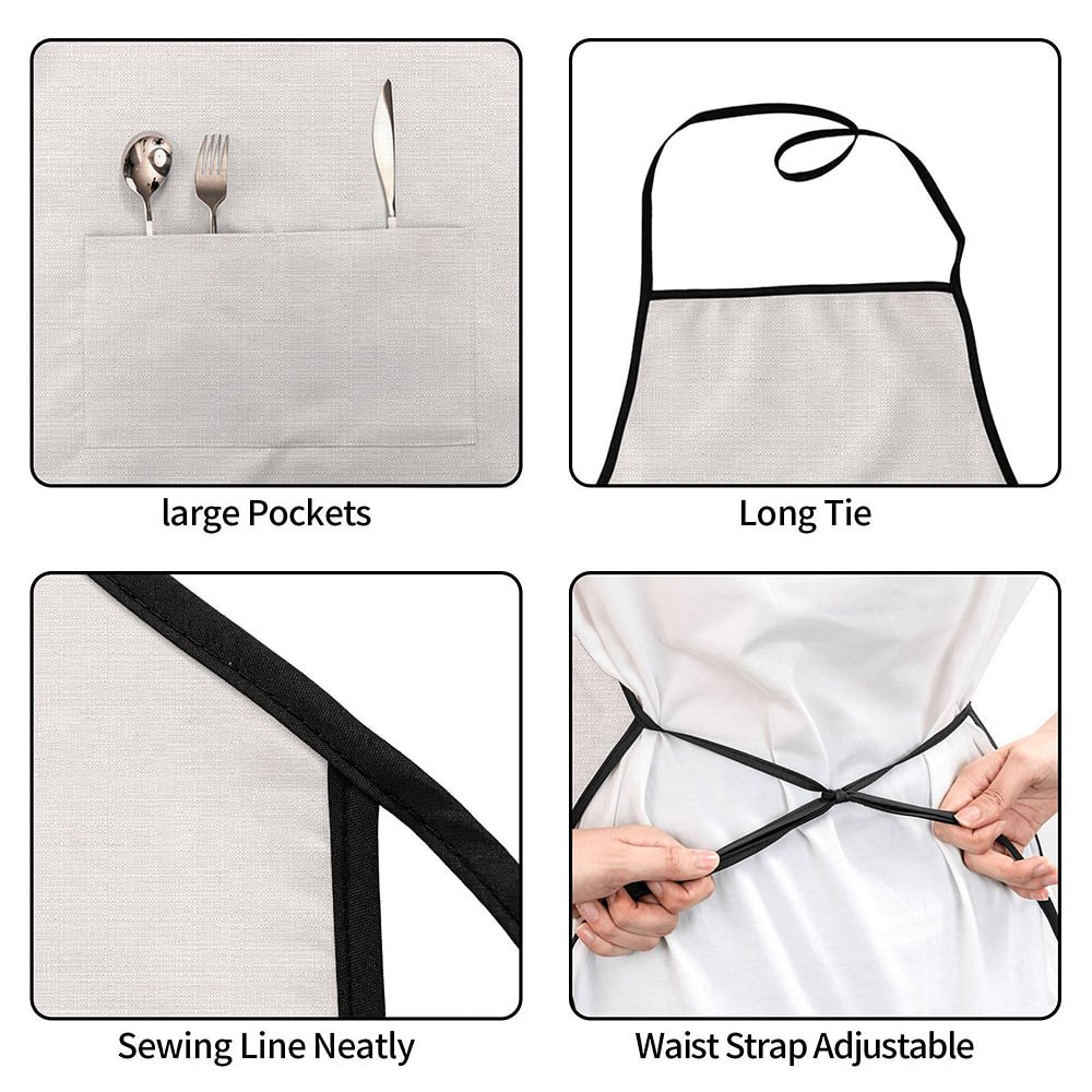 Diese Schürze eignet sich nicht nur für die heimische Küche, sondern auch für Supermärkte, Hotels, Getränkemärkte, Restaurants und viele andere Bereiche. Das lange Band und der verstellbare Taillengurt sorgen für einen sicheren und bequemen Sitz für alle Körpertypen. Ob Sie nun Gourmetgerichte kochen oder Gebäck backen, diese Schürze ist Ihre rechte Hand!