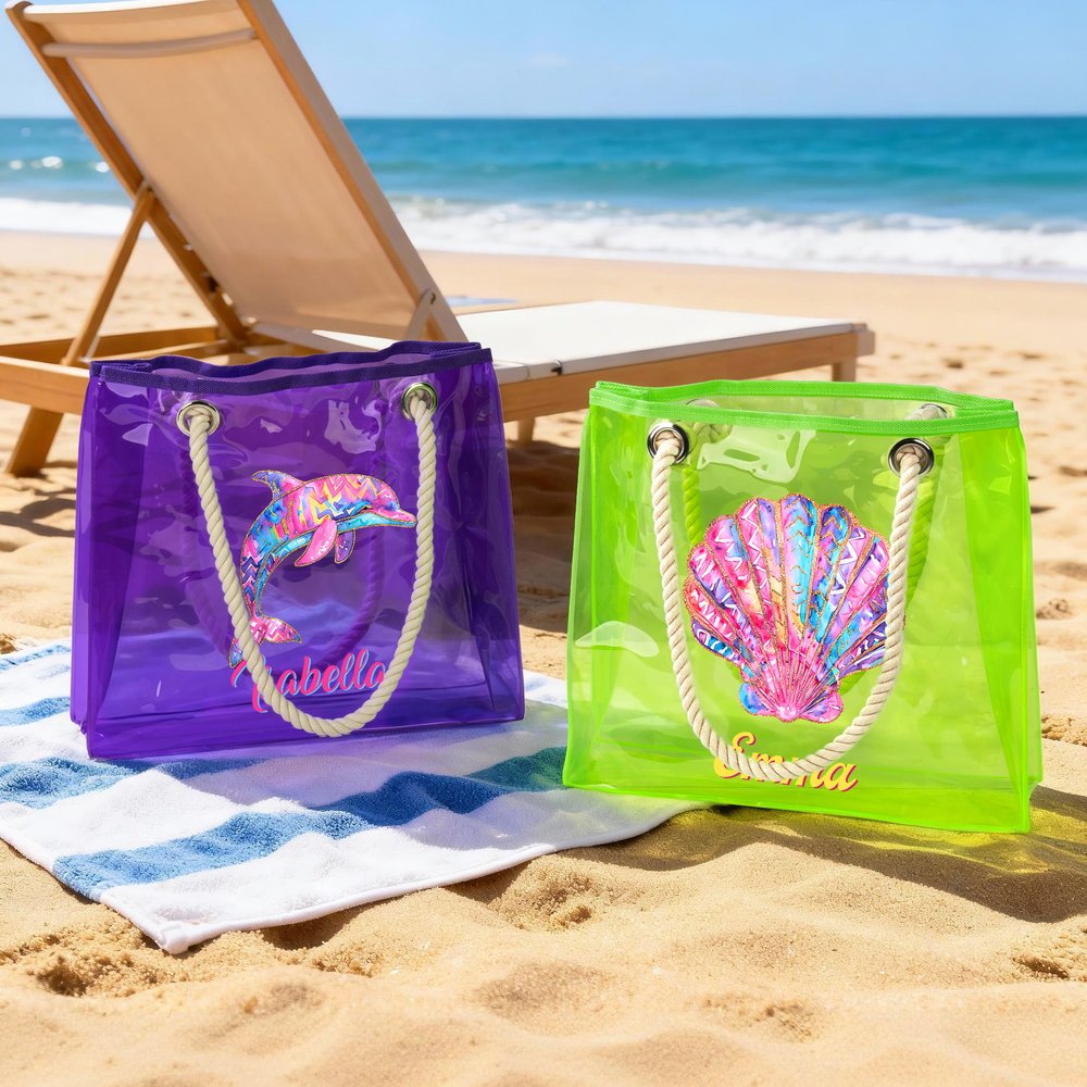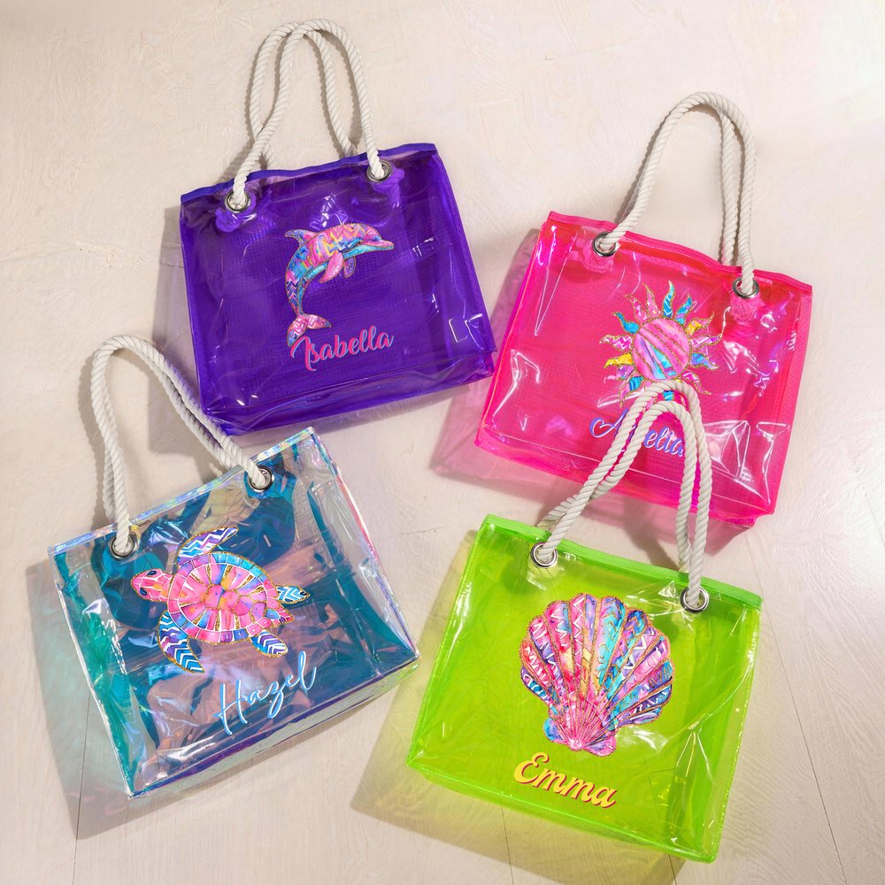 Die Tasche zeigt ein wunderschönes Meeresmotiv in Rosa-, Blau- und Lilatönen, das durch das holografische, transparente Material ergänzt wird. Unter Lichteinwirkung brechen sich die leuchtenden Farben und fangen die schimmernde Essenz des Ozeans ein. Sie können den Stil, das Muster und den Namen auf der Tasche individuell gestalten und so Ihren einzigartigen Modegeschmack und Charme zur Geltung bringen.