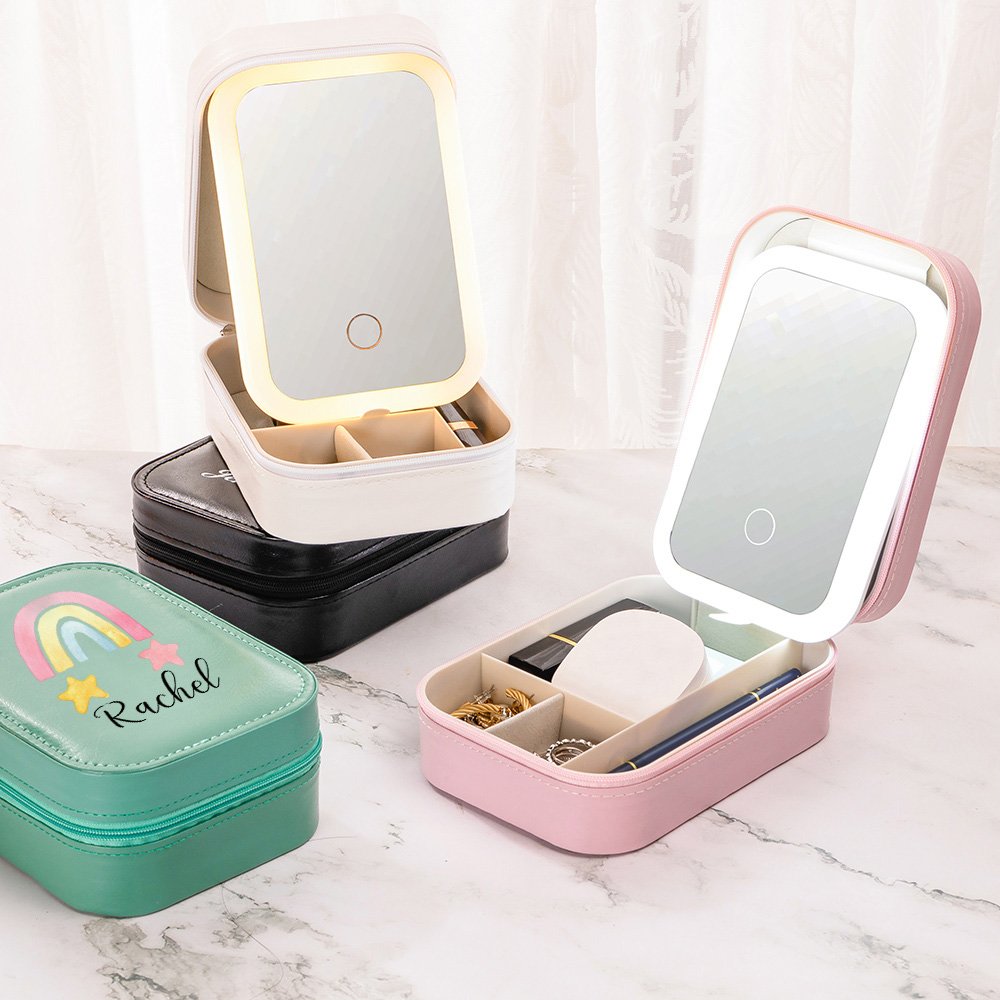 Der Innenraum ist mit mehreren Fächern und verstellbaren Abschnitten durchdacht organisiert und bietet eine sichere und effiziente Aufbewahrung für Ringe, Halsketten, Ohrringe, Armbänder und mehr. So wird verhindert, dass sich Ihr Schmuck verheddert oder aneinander reibt. Das leichte Design macht sie zum idealen Reisebegleiter, während der eingebaute, verstellbare Spiegel mit dreifarbigen LEDs es Ihnen ermöglicht, Ihr Aussehen jederzeit und überall mühelos zu überprüfen.