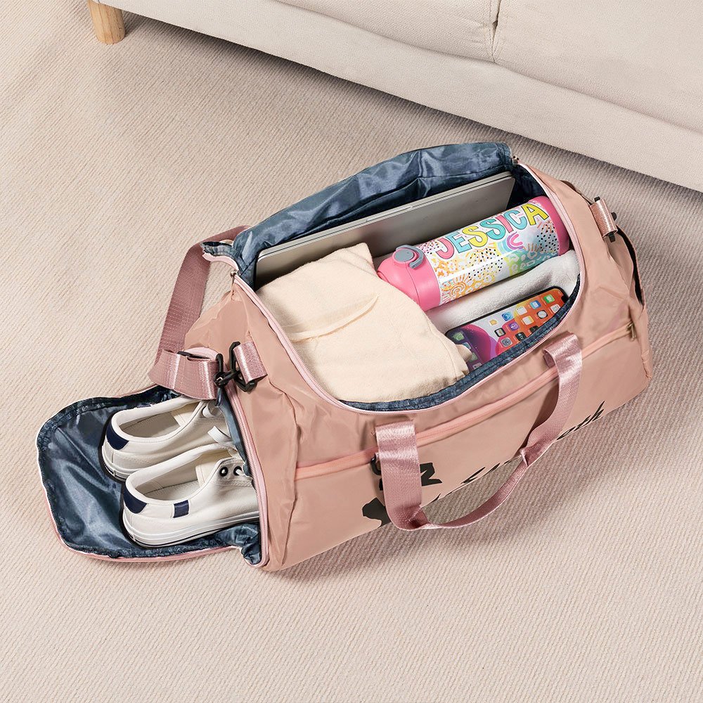 Diese Tasche kann als Sportgerätetasche verwendet werden, in die man schnell das Nötigste einpacken kann, z. B. Trainingskleidung, Tanzschuhe, Wasserflaschen, Handtücher usw.; sie kann auch als Reisebegleiter verwendet werden, um Sie zwischen verschiedenen Städten zu begleiten. Darüber hinaus ist sie auch für tägliche Reisen geeignet, ob beim Einkaufen oder Pendeln, sie kann ein Highlight für Ihren Stil sein.