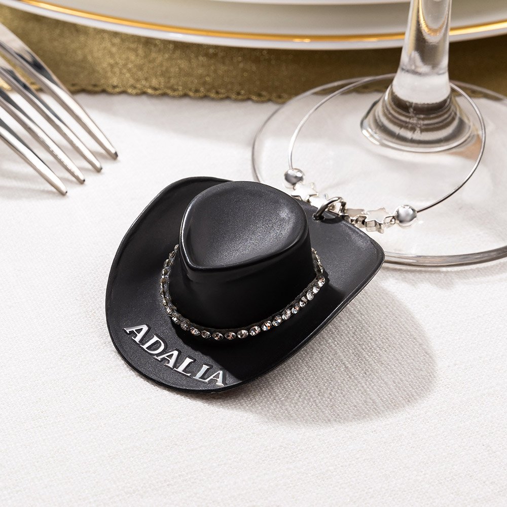 Unsere Weinglas-Anhänger sind im Western-Stil gestaltet. Jedes Stück ist mit Sternen und runden Perlen verziert und wird mit einem Cowgirl-Hut kombiniert – ideal zur stilvollen Dekoration von Gläsern. Die Hüte sind in fünf Farbvarianten erhältlich und können wahlweise mit oder ohne Strasssteine versehen werden, um sich an verschiedene Partythemen anzupassen. Zusätzlich bieten wir eine Personalisierung mit Namen an, so verleihen Sie jedem Glas einen ganz individuellen und einzigartigen Look.