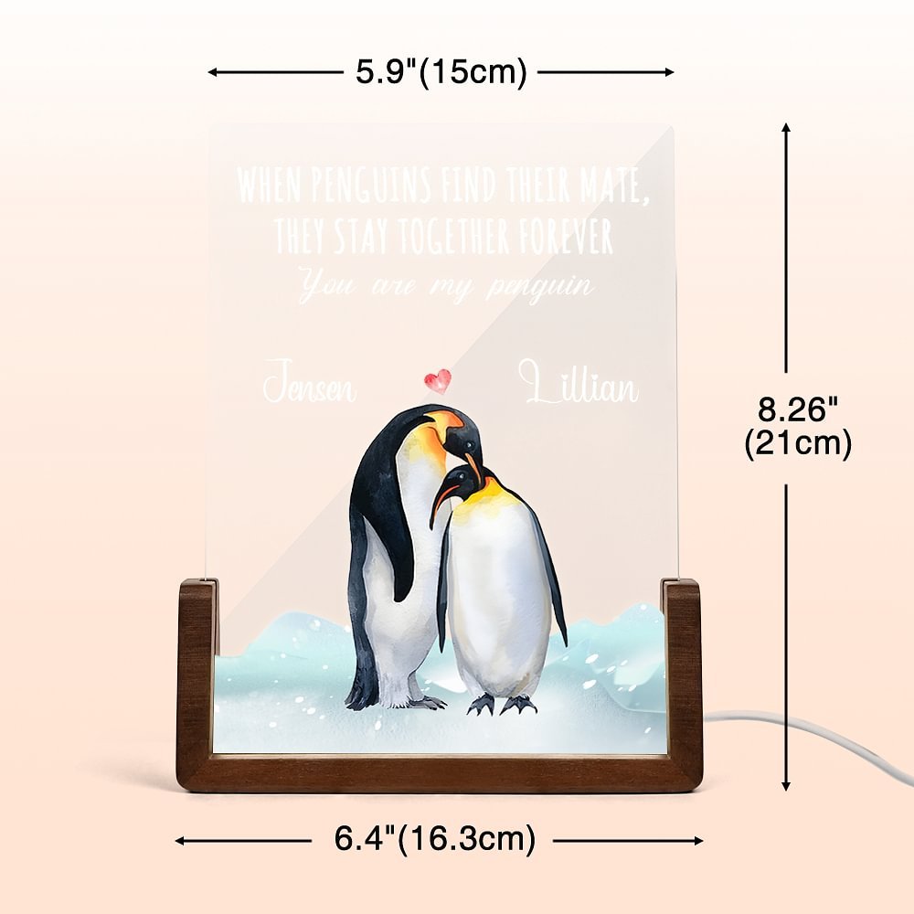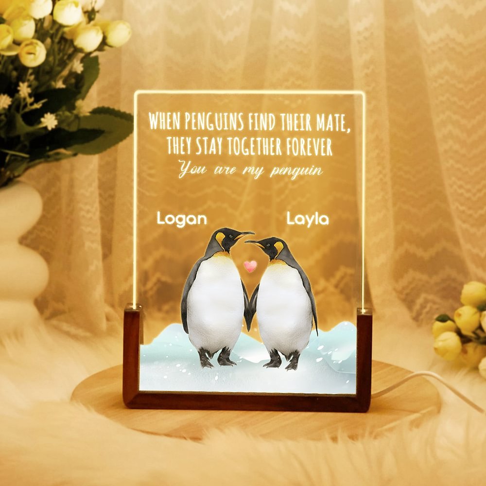 Mit einem niedlichen Pinguinpaar und dem herzlichen Spruch "When Penguins Find Their Mate, They Stay Together Forever" symbolisiert dieses Nachtlicht auf wunderschöne Weise lebenslange Liebe und Hingabe. Pinguine sind dafür bekannt, dass sie sich für einen Partner fürs Leben entscheiden. Das macht dieses Design besonders aussagekräftig für Paare, die Treue und Hingabe zu schätzen wissen.