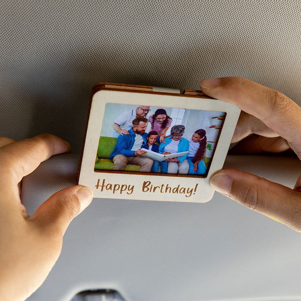 Mit diesem personalisierten Bilderrahmen-Clip aus Holz können Sie Ihre Lieblingsfotos in Ihrem Fahrzeug ausstellen, denn er passt nahtlos an die Sonnenblende Ihres Autos. Mit der Möglichkeit, eine besondere Nachricht zu gravieren, wird er zu einem aufmerksamen und einzigartigen Geschenk für Familie und Freunde, das ihnen zeigt, wie sehr Sie sie mögen. Dieses Accessoire eignet sich perfekt zur Präsentation von Familienfotos, geliebten Haustieren oder besonderen Erinnerungsstücken und verleiht Ihrem Fahrerlebnis Wärme und Persönlichkeit.