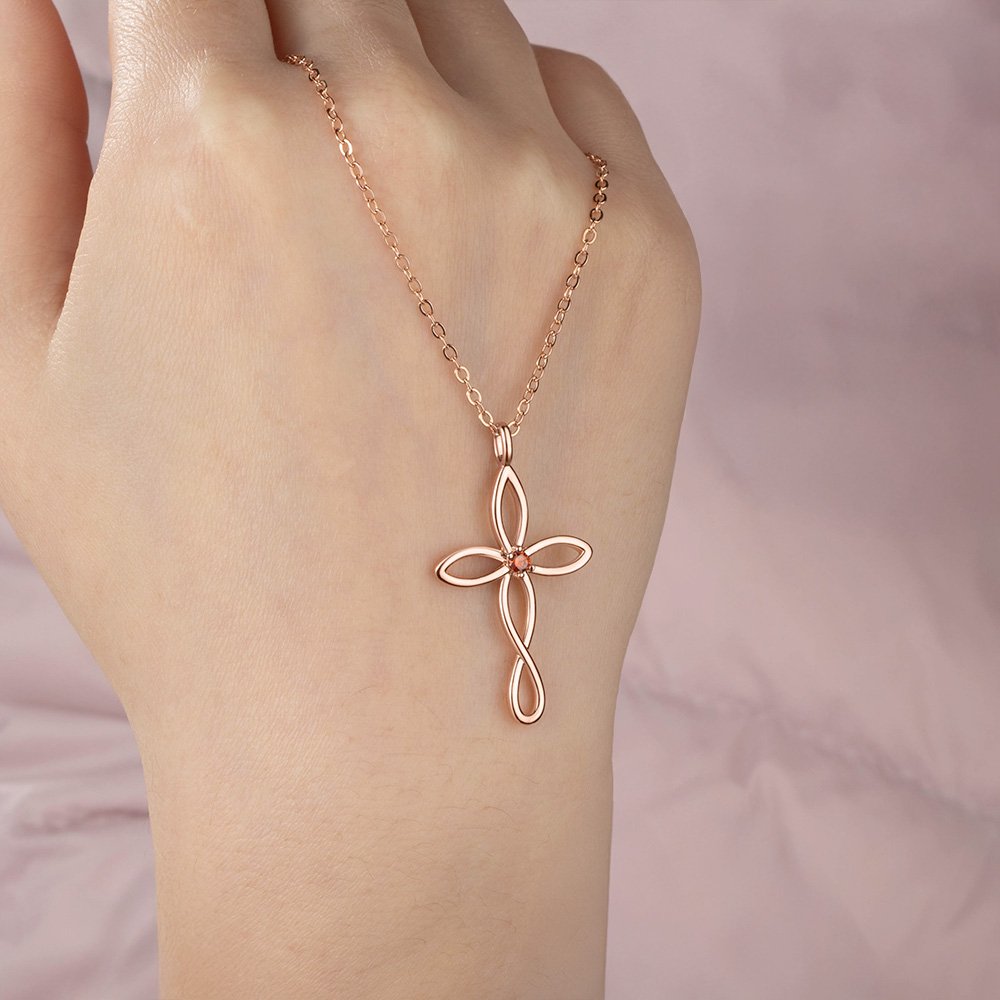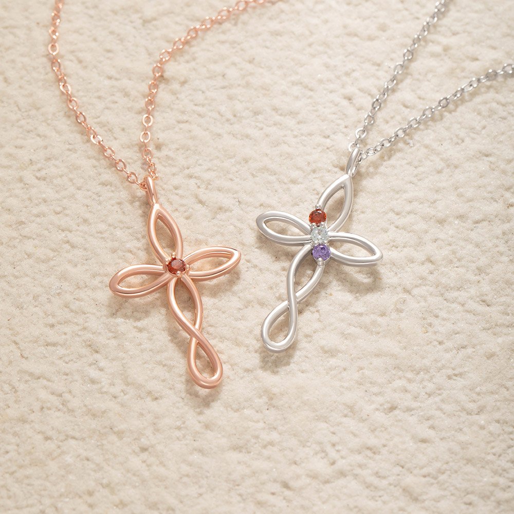 Diese Halskette ist einzigartig und symbolisiert das Band des Glaubens, der Liebe und der Familie. Das Kreuzdesign ist einfach und elegant, und die gewundenen Details verleihen ein Gefühl der Schichtung, was tiefe Gefühle und Schutz impliziert. Die Halskette kann mit 1 bis 5 Geburtssteinen eingelegt werden. Jeder Edelstein symbolisiert einen geliebten Menschen und macht sie zu einem einzigartigen Erinnerungsschmuck, der es dem Träger ermöglicht, immer die Gesellschaft und den Segen der Familienmitglieder zu spüren.