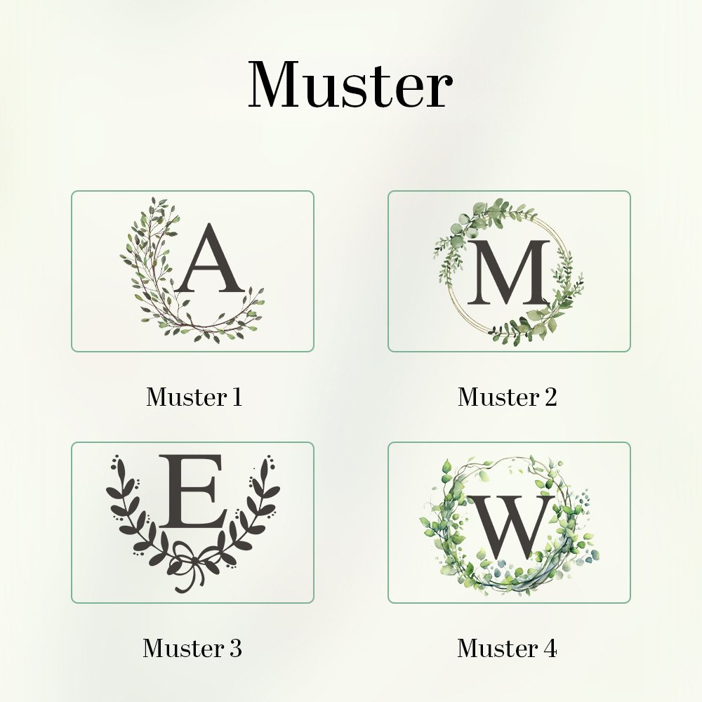 Das Handtuch besticht durch sein einzigartiges Design, das Initialen und ein Blumenkranzmuster miteinander verbindet und so seinen künstlerischen Charme unterstreicht. Es stehen vier verschiedene Designs zur Verfügung, sodass Sie dasjenige auswählen können, das am besten zu Ihrem bevorzugten Stil passt. Zusätzlich besteht die Möglichkeit, den eigenen Namen und das Datum unterhalb des Kranzmusters hinzuzufügen, wodurch das Handtuch zu einem bedeutungsvollen Erinnerungsstück wird.
