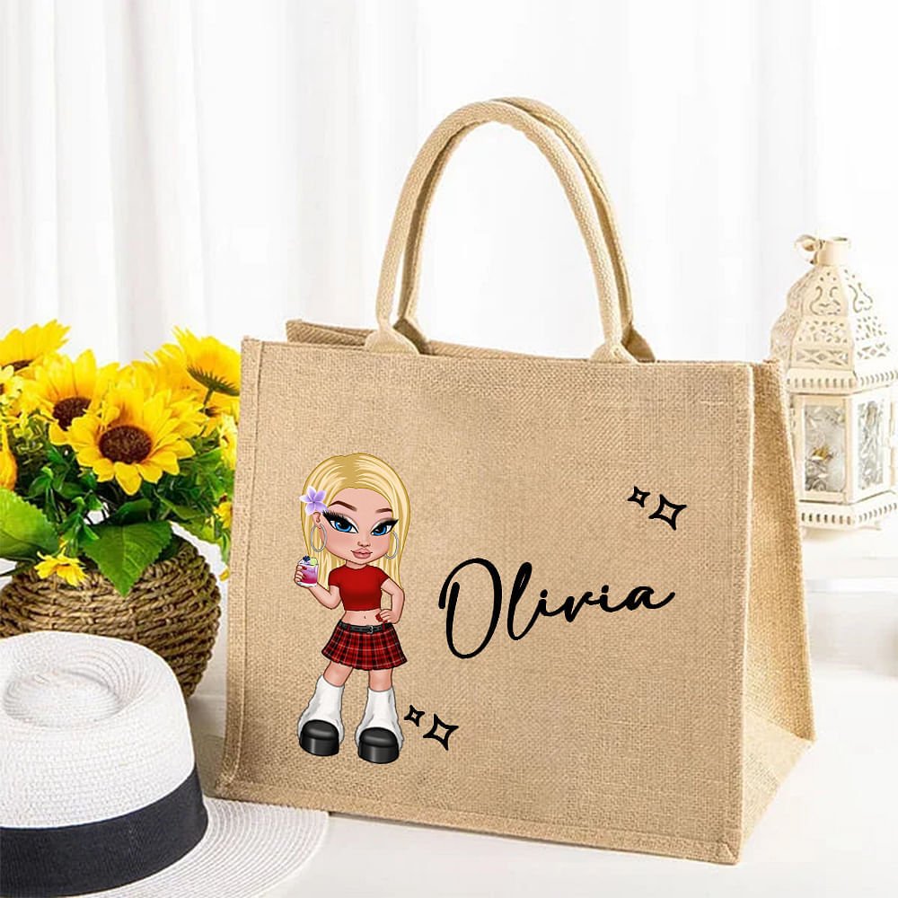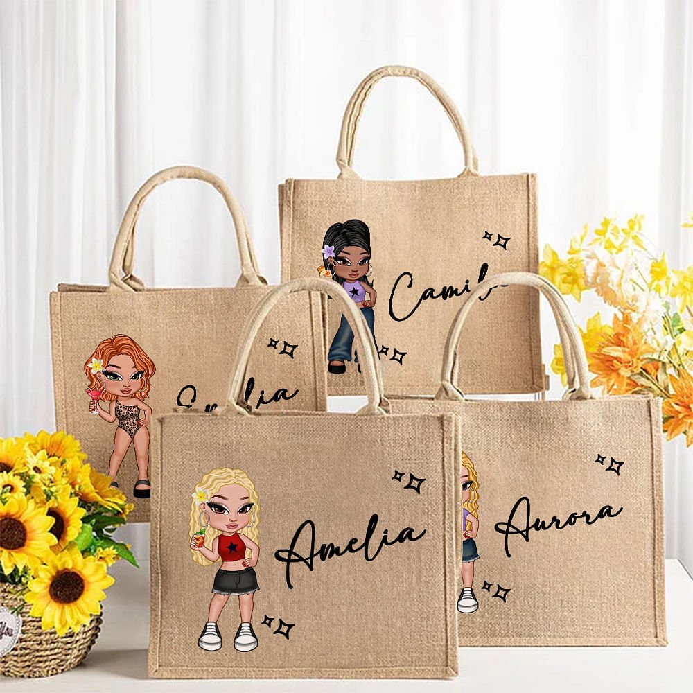 Personalisierte Y2K Stil niedlichen Cartoon Mädchen große Kapazität Jute Tasche mit Namen Tote Bag Jahrestag Geburtstag Geschenk für Frauen Mädchen