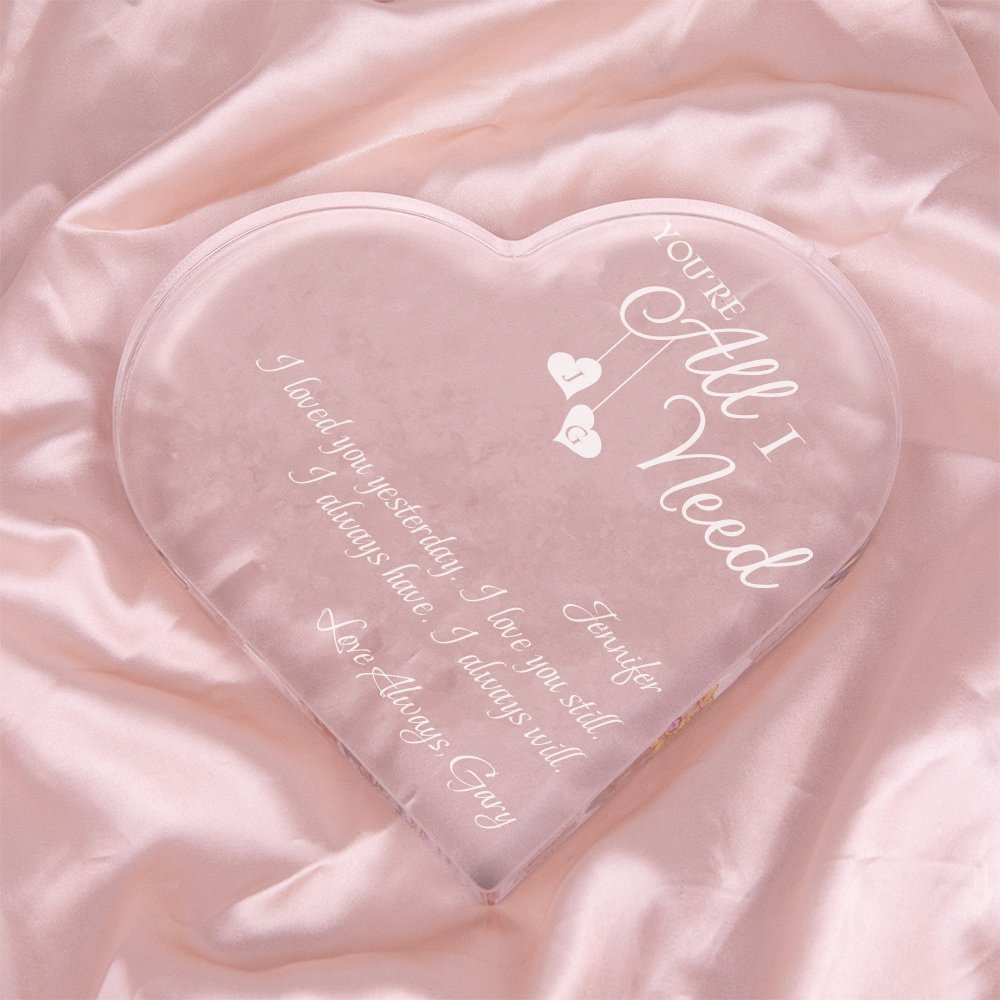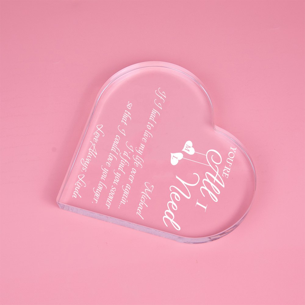 Diese Acryl-Herz-Plakette hat eine elegante Herzform, die jedem Raum einen Hauch von Eleganz und Charme verleiht. Mit der Option, Ihren Namen, Ihre Initialen und Ihren Segen hinzuzufügen, wird diese Tafel zu einem wirklich einzigartigen idealen Geschenk für den Valentinstag, Jahrestage oder sogar Weihnachten.