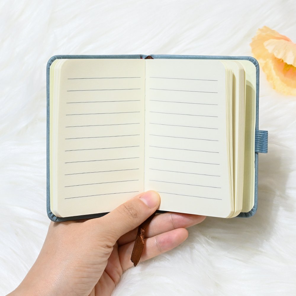 Zusätzlich zu seinem schönen Äußeren verfügt dieses Tagebuch über ein Lesezeichen mit Band, das das Nachschlagen und Organisieren von Notizen erleichtert. Das elastische Band auf der Rückseite sorgt dafür, dass Ihre Notizen sicher bleiben, und macht es zu einem praktischen Begleiter für die Suche nach Inspiration oder ruhigen Momenten zum Nachdenken, jederzeit und überall.