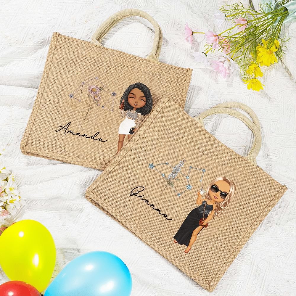 Diese Handtasche zeigt ein modisches Cartoon-Frauenmotiv mit Geburtsblumen und Sternzeichen. Jedes Design ist einzigartig und ist ein hervorragendes Accessoire für jede Frau. Die Tasche kann mit einem Namen personalisiert werden, was sie zu einem besonderen Andenken für die Besitzerin macht. Es stehen vier Modelle zur Auswahl, darunter eine normale Tasche, eine große Magnettasche und eine Tasche mit Reißverschluss. Dies ist ein einzigartiges und bedeutungsvolles Accessoire, das Ihre Persönlichkeit widerspiegelt.